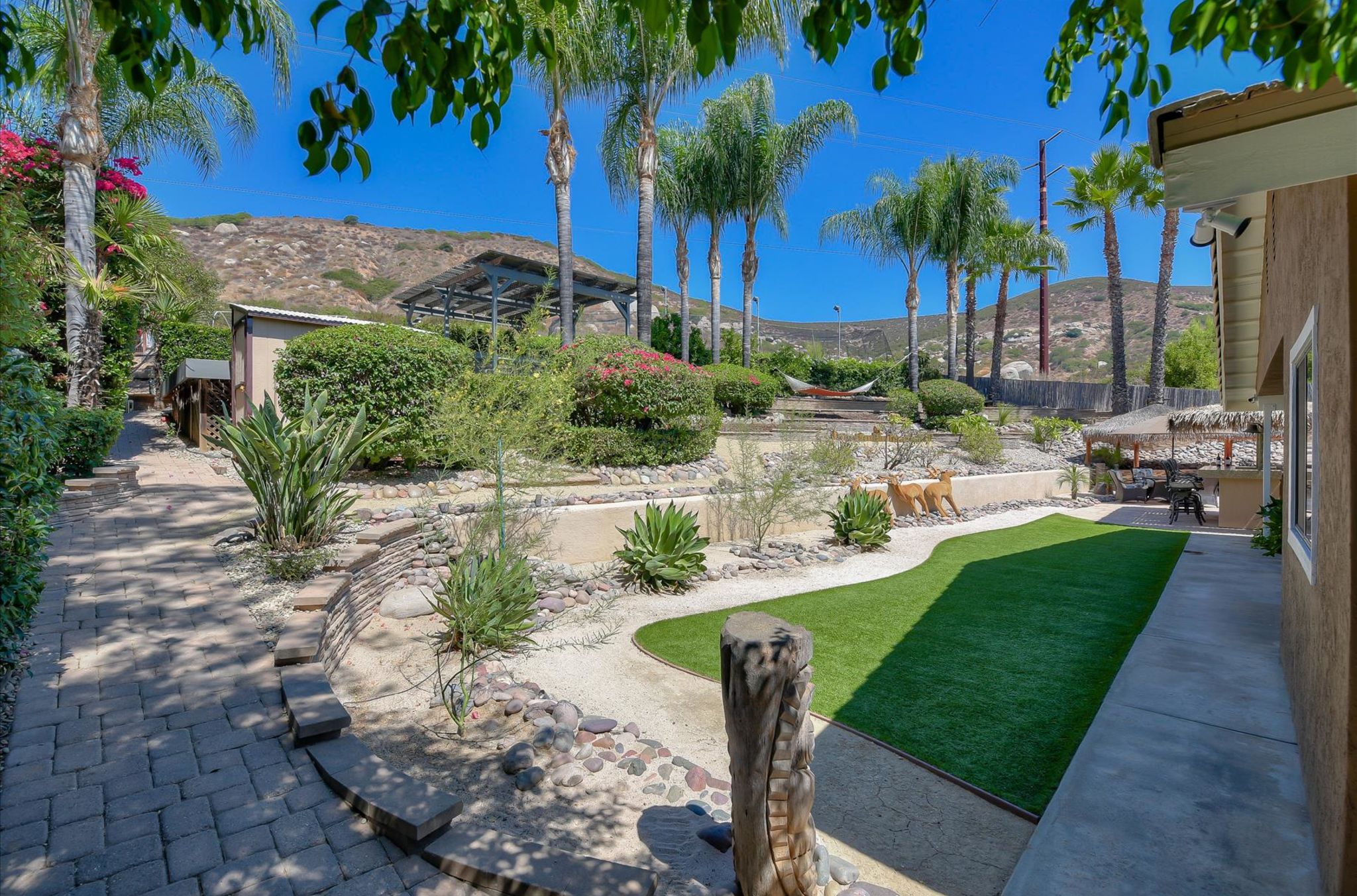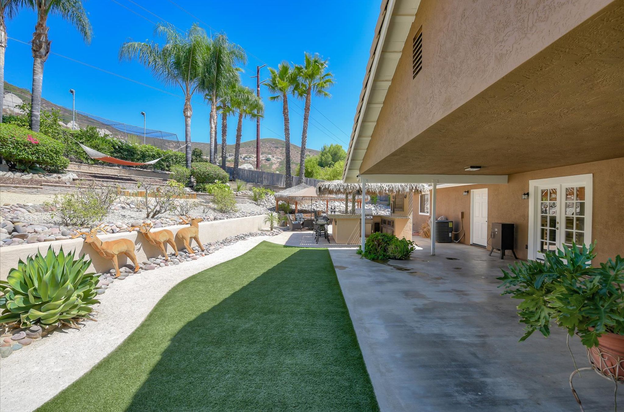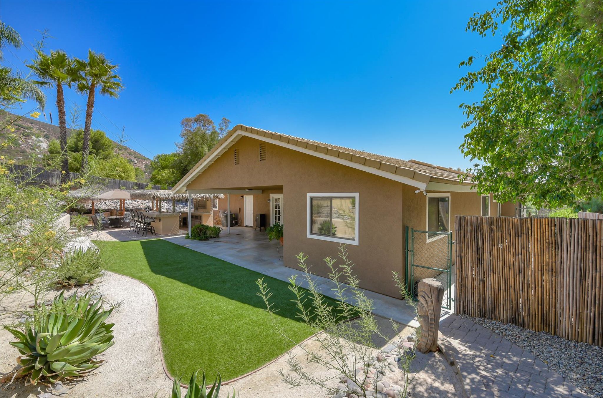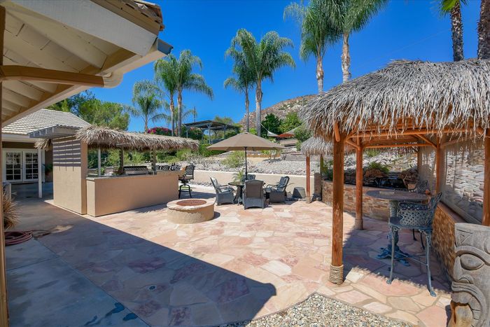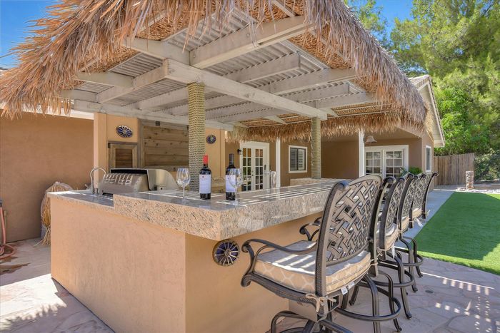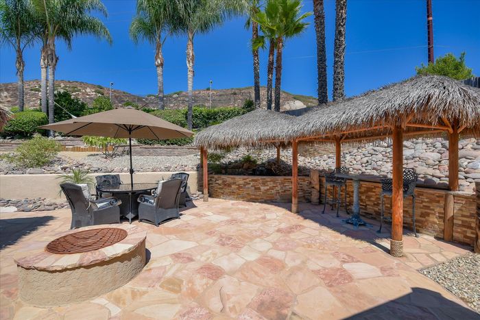 Enjoy this beautiful personal retreat! Welcome friends & family over to this amazing, no expense spared entertainer’s dream backyard! This awesome single story home boasts a full outdoor kitchen complete with BBQ, fridge, beer keg, built-in TV cabinet and bar seating. Relax by the waterfall and Koi pond under the shade of the palapa. Gorgeous views from the spa located on the upper garden terrace. No neighbors behind you.
