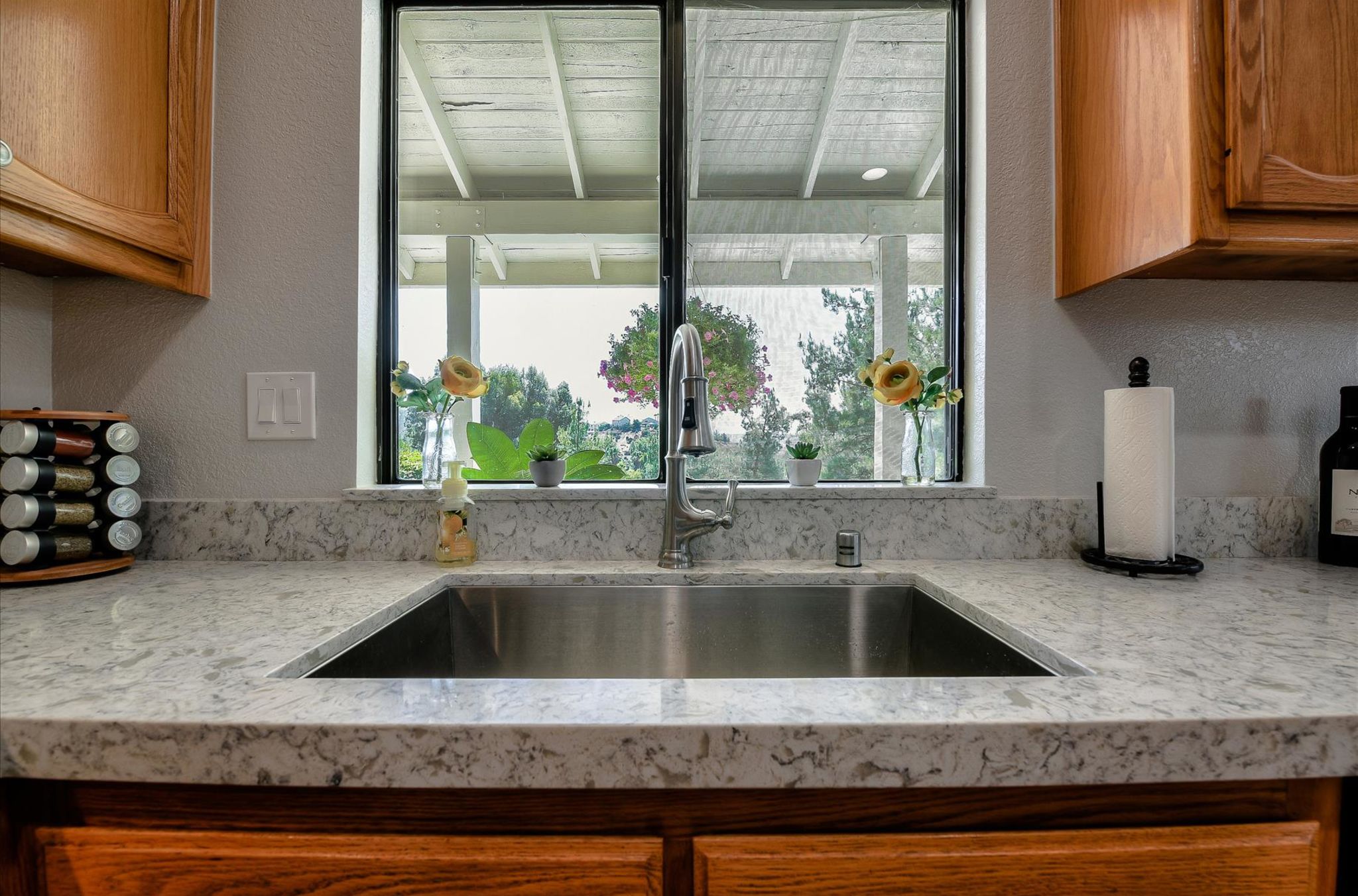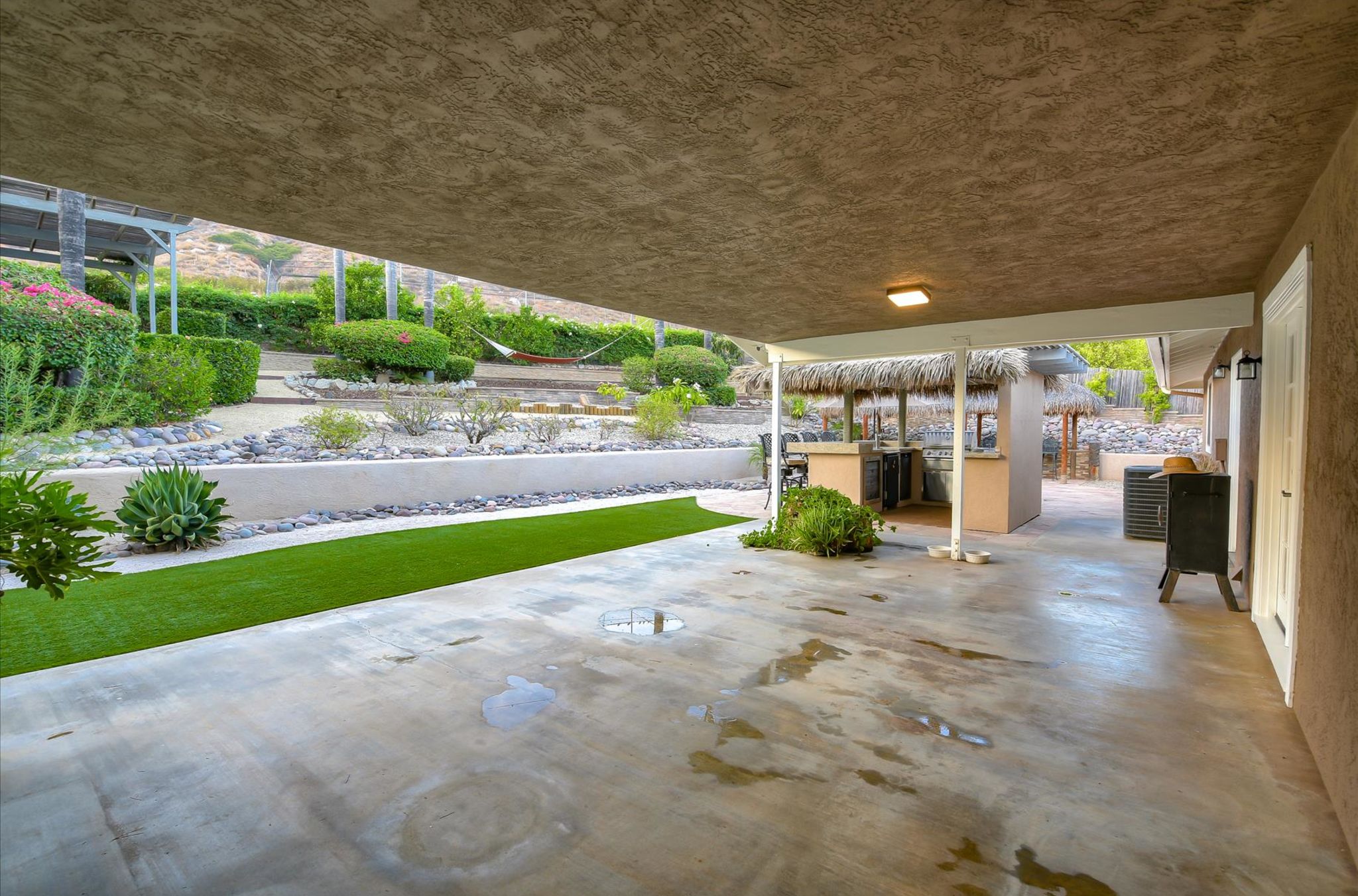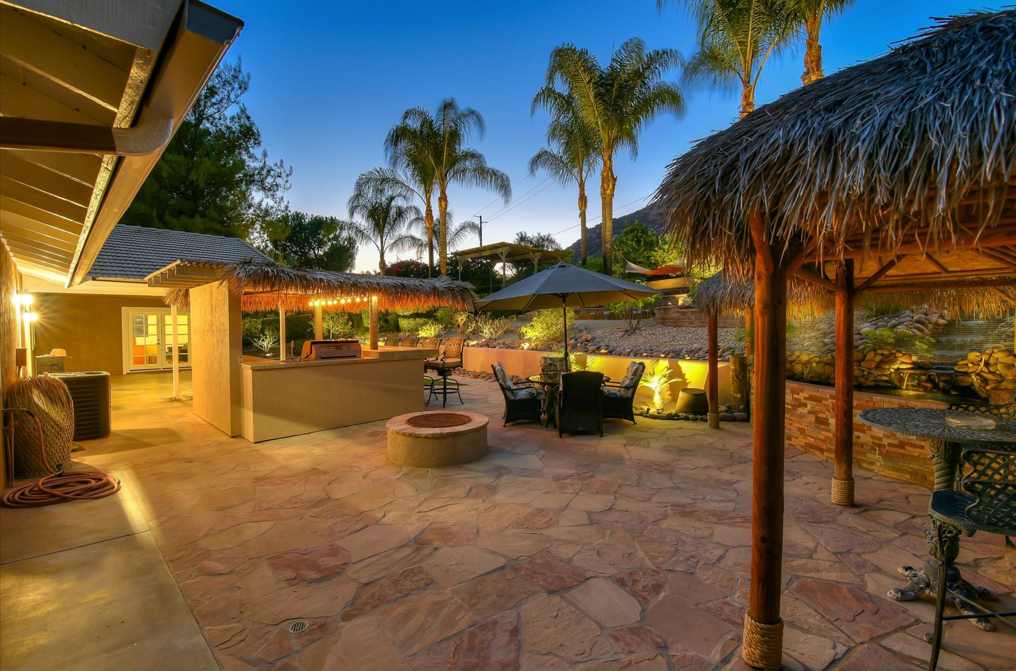 Enjoy this beautiful personal retreat! Welcome friends & family over to this amazing, no expense spared entertainer’s dream backyard! This awesome single story home boasts a full outdoor kitchen complete with BBQ, fridge, beer keg, built-in TV cabinet and bar seating. Relax by the waterfall and Koi pond under the shade of the palapa. Gorgeous views from the spa located on the upper garden terrace. No neighbors behind you.
