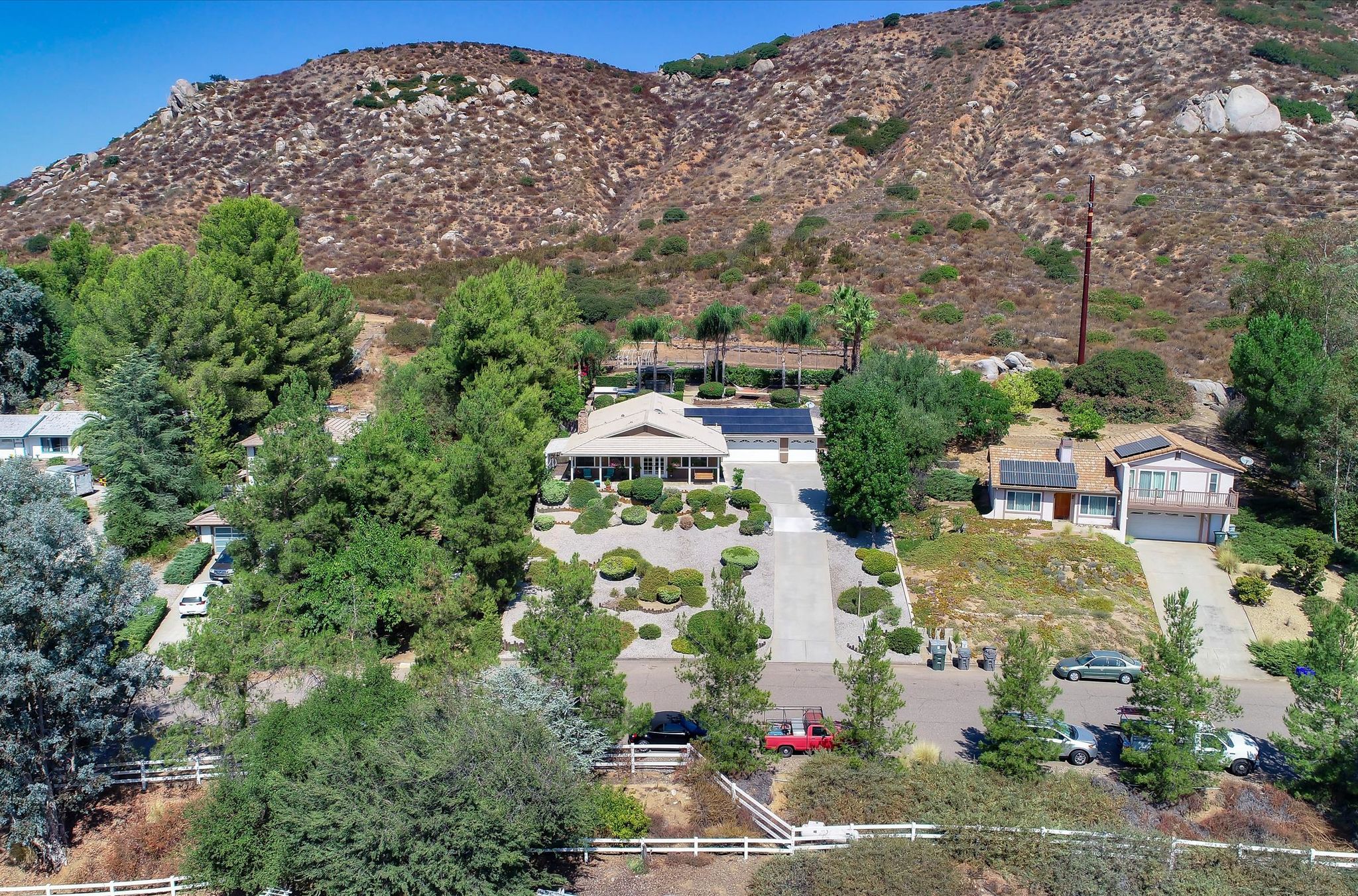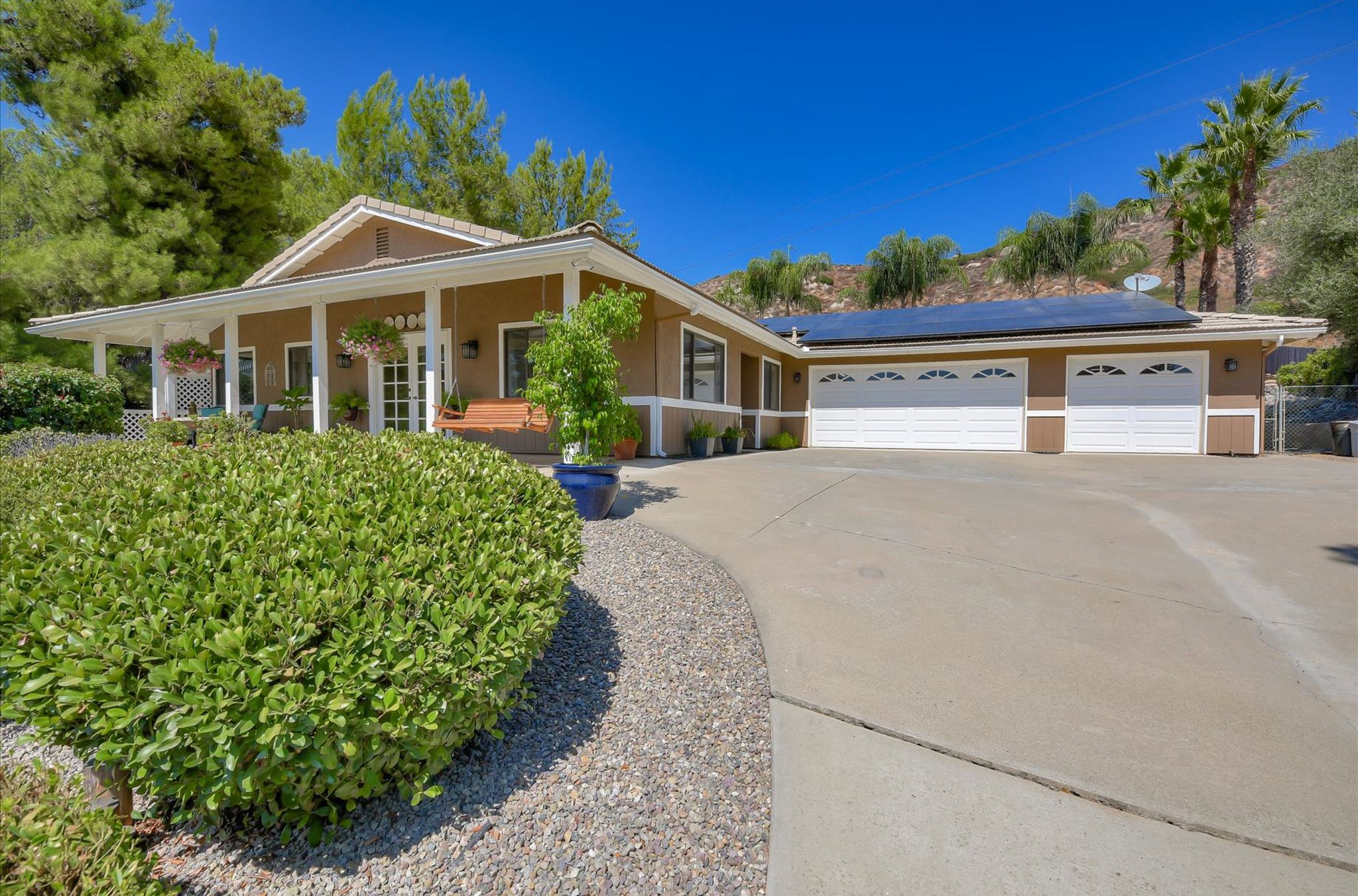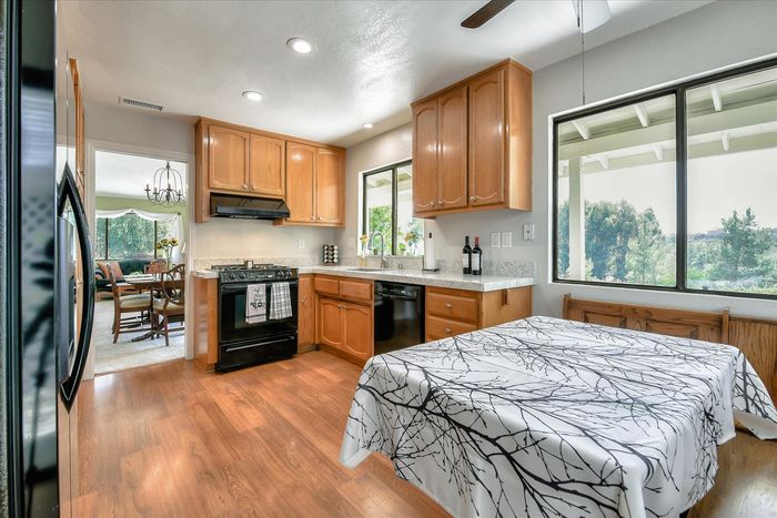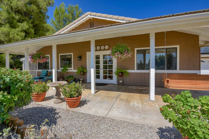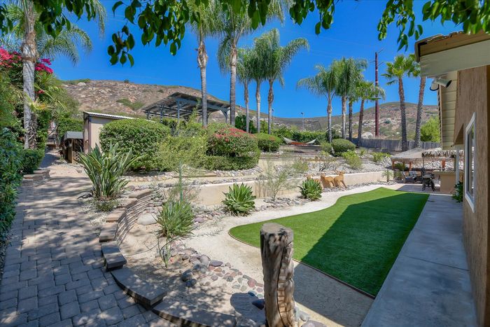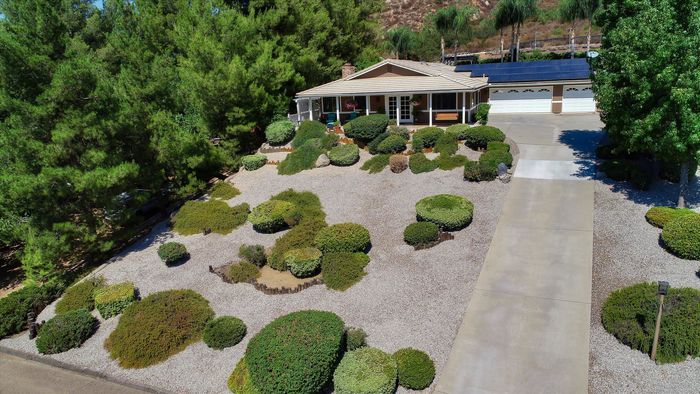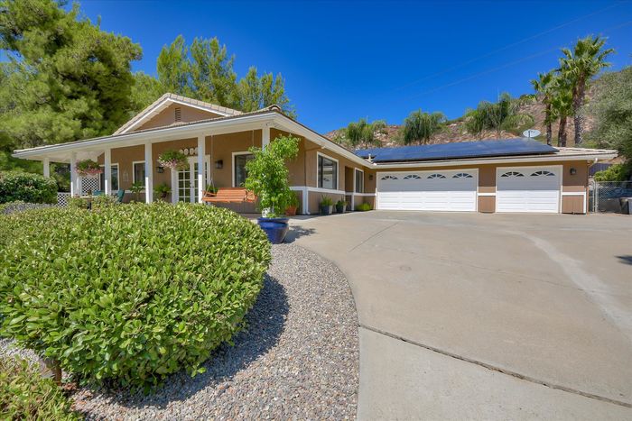 This ranch home has French doors that open to the front porch with views that will be sure to brighten your morning. The kitchen has new Quartz countertops and the farmhouse style sink and has been freshly painted. This home features an eat-in kitchen with built-in breakfast nook and an open living room/dining room space. The combo living room/dining room with French doors is perfect for gatherings. Large rock fireplace will warm the family room during those cold winter nights. Spacious master bedroom has an adjacent 12x14 room for office or exercise or… Three additional bedrooms complete this wonderful home. Numerous upgrades throughout, including the owned 36 solar panels to provide energy efficiency, newer Water Heather, newer roof and much more. See list in the Attachments. San Diego Country Estates offers hiking and horse trails, equestrian center, recreation center, two pools, park, tennis and pickleball. Local restaurants and bars are part of the community.