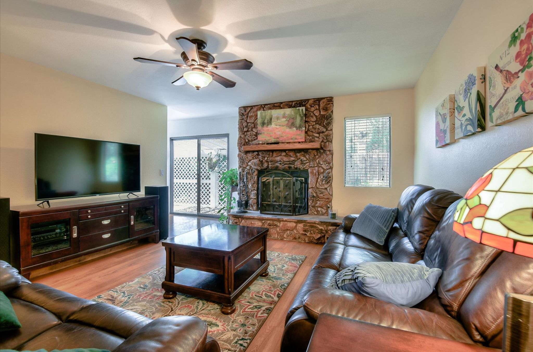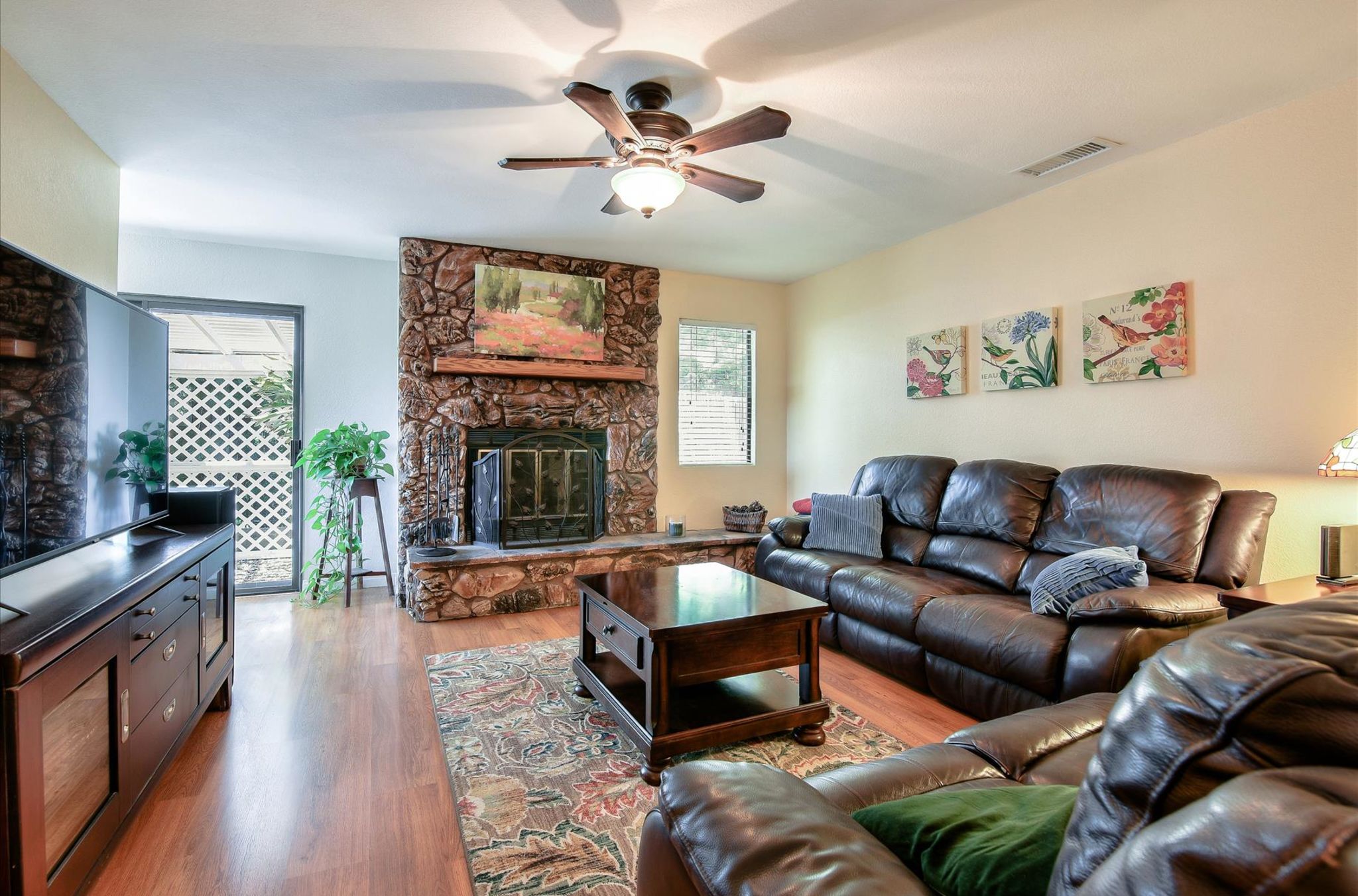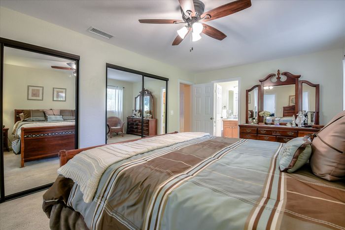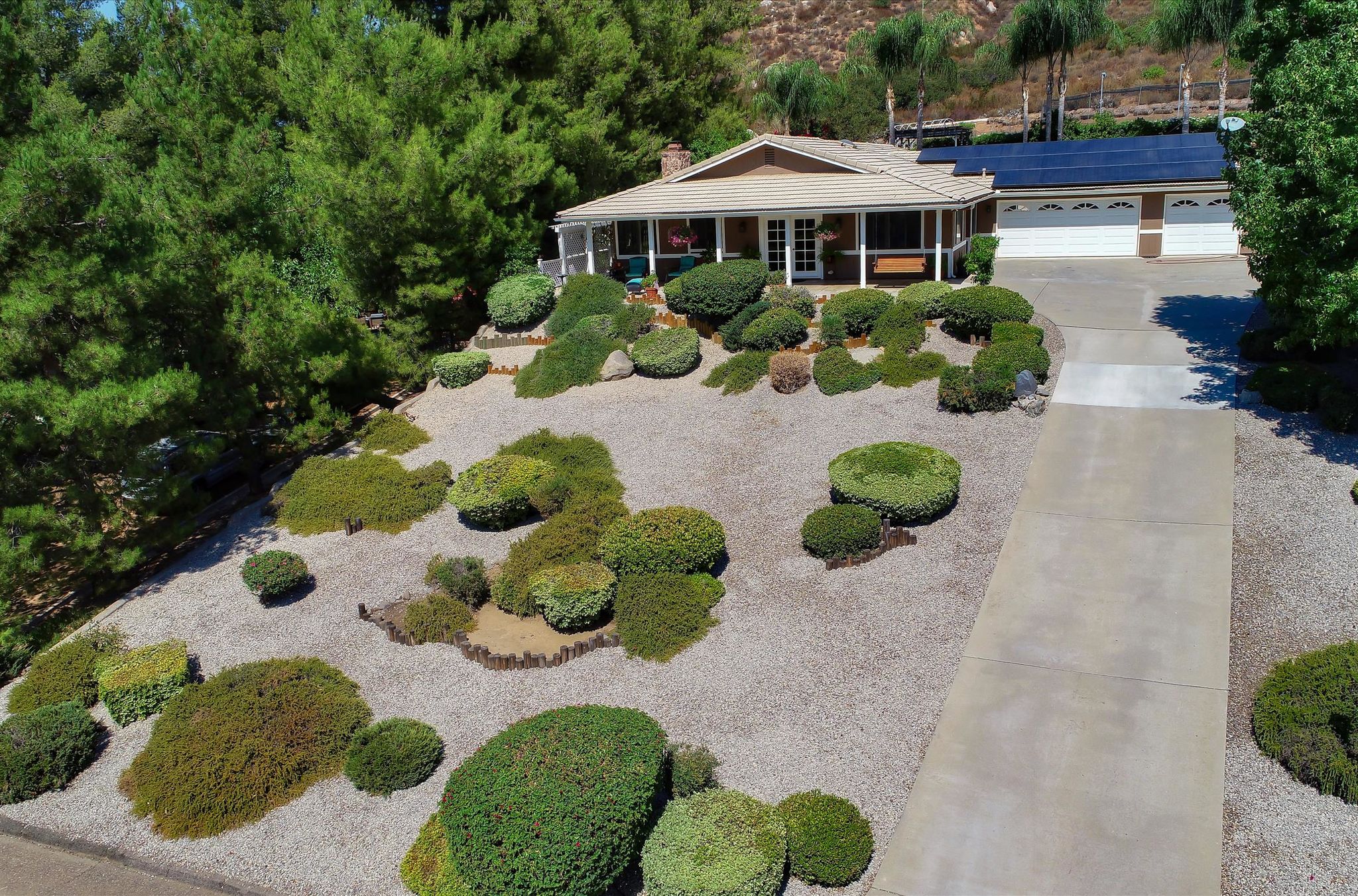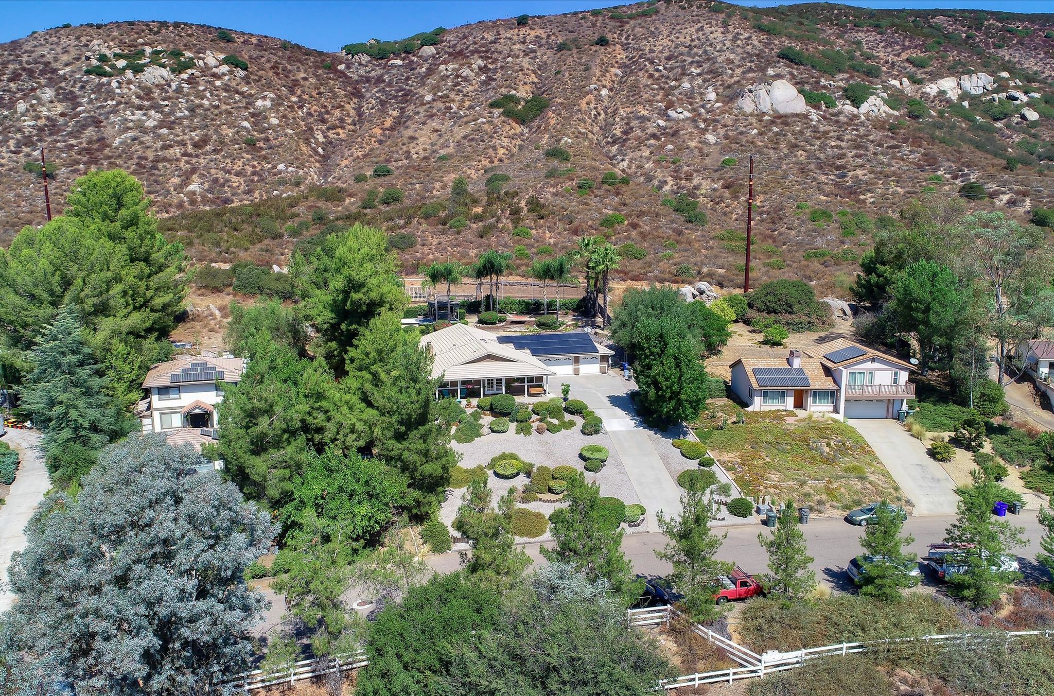 This ranch home has French doors that open to the front porch with views that will be sure to brighten your morning. The kitchen has new Quartz countertops and the farmhouse style sink and has been freshly painted. This home features an eat-in kitchen with built-in breakfast nook and an open living room/dining room space. The combo living room/dining room with French doors is perfect for gatherings. Large rock fireplace will warm the family room during those cold winter nights. Spacious master bedroom has an adjacent 12x14 room for office or exercise or… Three additional bedrooms complete this wonderful home. Numerous upgrades throughout, including the owned 36 solar panels to provide energy efficiency, newer Water Heather, newer roof and much more. See list in the Attachments. San Diego Country Estates offers hiking and horse trails, equestrian center, recreation center, two pools, park, tennis and pickleball. Local restaurants and bars are part of the community.