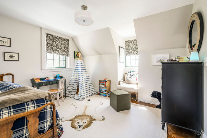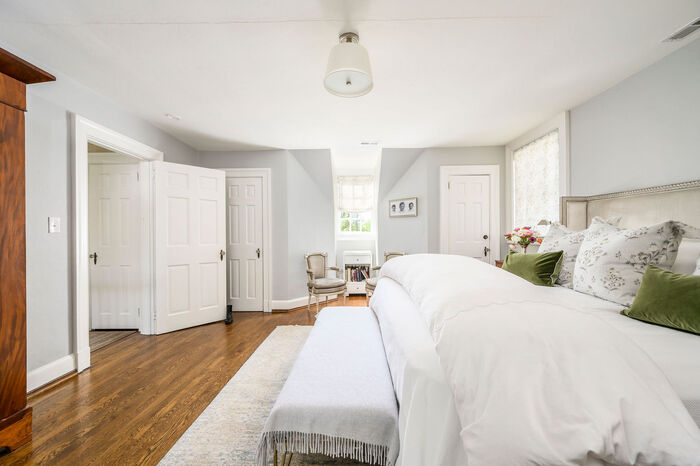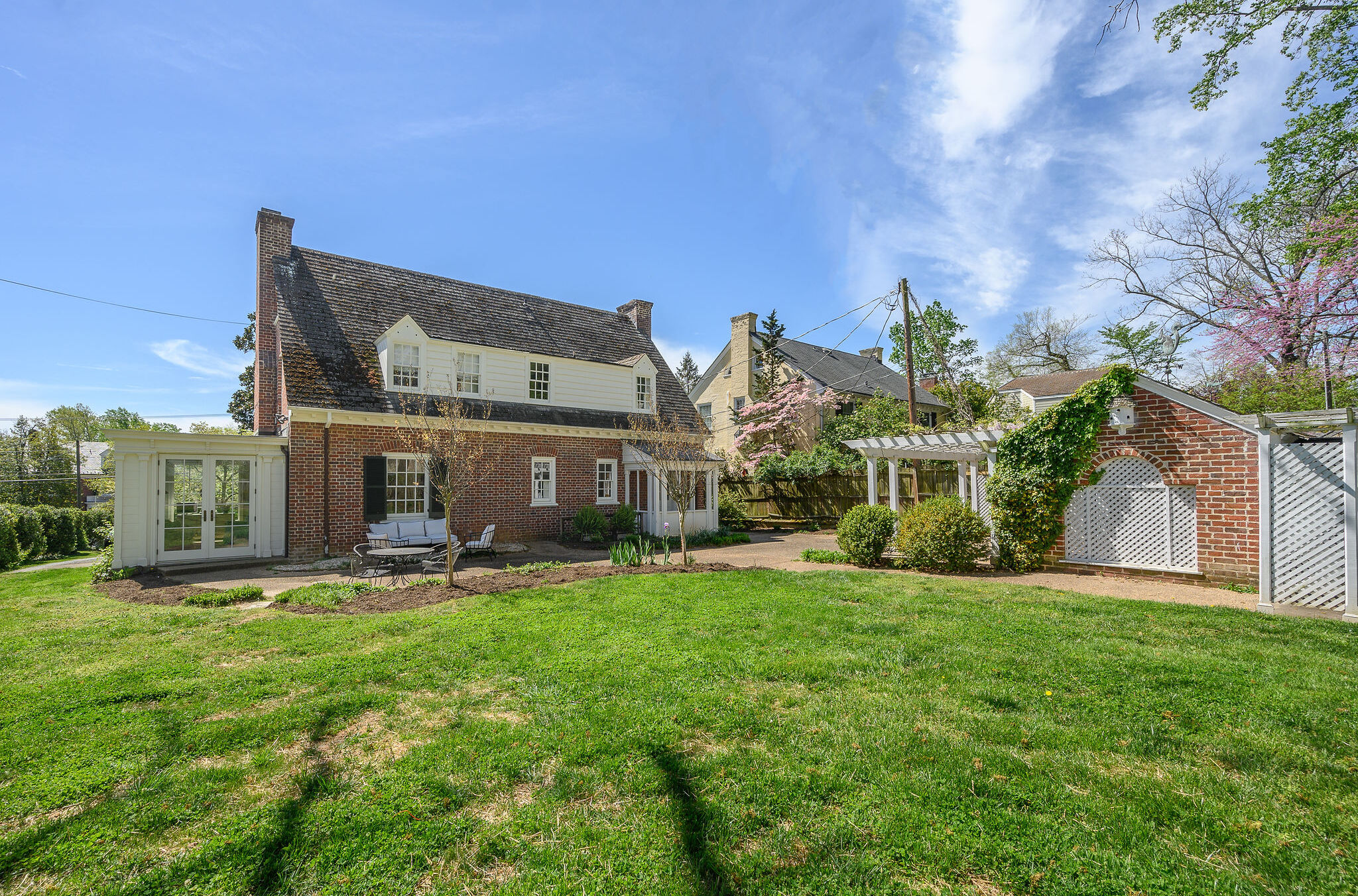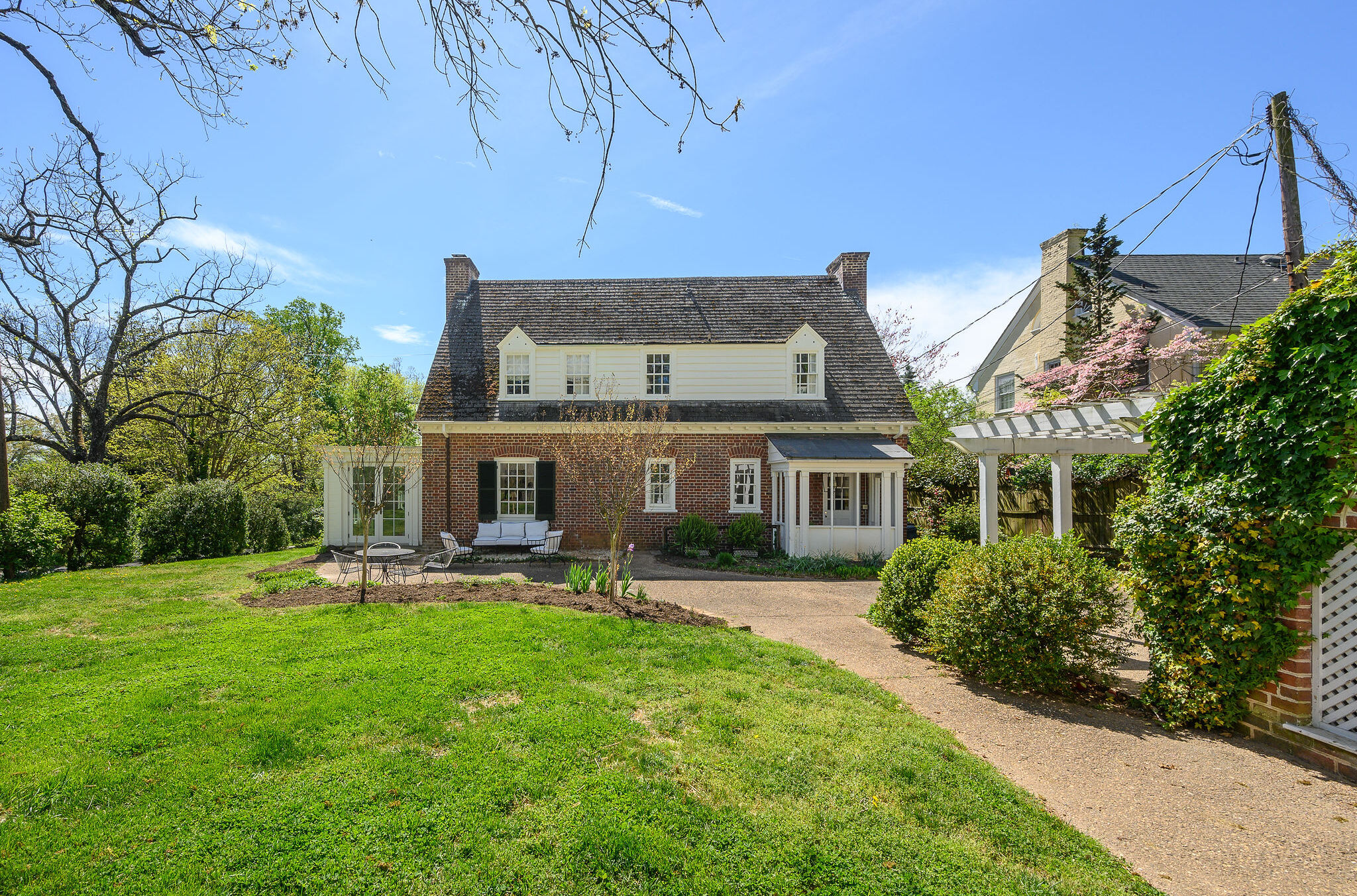 Absolutely stunning, fully renovated 1930’s brick cape located on Rugy Road’s prettiest block within walking distance to UVA Grounds and Hospital and minutes to historic downtown. Complete w/ English and American boxwood perimeters, extensive landscaping and brick and stone walls the home offers high ceilings, arched doorways, extensive trim detail and massive windows which flood each room with natural light. A large living room with lacquered ceiling and fireplace with custom mantle and marble surround spans from the front to the rear of the home and opens into the sunroom with floor to ceiling new Marvin Select windows and french doors. A formal dining room allows for great entertaining and the renovated kitchen is finished with crisp white cabinets and commercial grade appliances.Classic and timeless details are found throughout the home including carrara marble baths and exposed beams on the third floor. On the 2nd floor is a master suite and two additional bedrooms with hall bath and on the third floor is a den or fourth bedroom and walk-in storage room. The large, level heavily landscaped lawn is complimented by a covered, brick pavilion for summer entertaining.