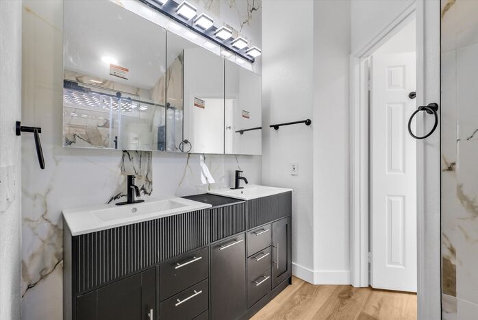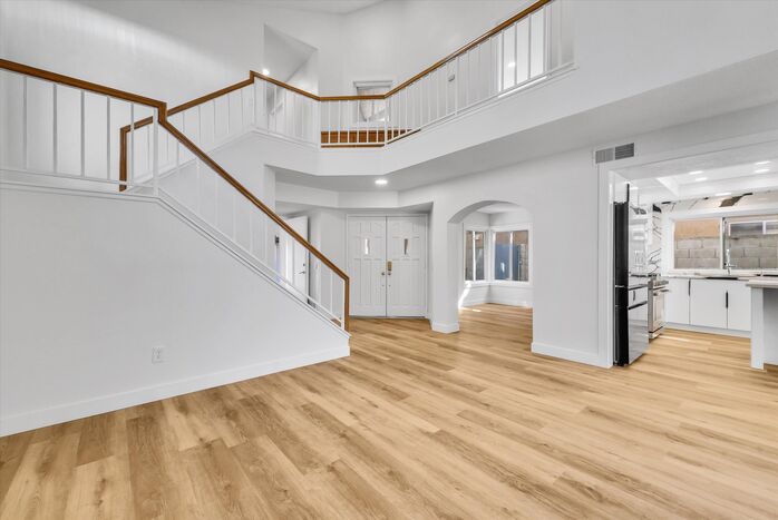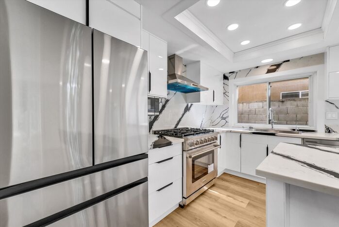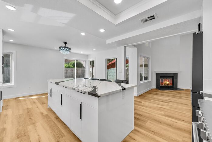 Marvelous home with 4 bedrooms and 2 1/2 baths in the desirable Chino Hills community. This stunning home includes a plethora of upgrades including New Wood Flooring, Freshly Painted Interior, New Light Fixtures throughout the home, and Remodeled Kitchen and Bathrooms. When you enter the home, you’re greeted with High Ceilings in the spacious Living Room accompanied by a cozy tiled fireplace. To the left you’ll find a Formal Dining Room. As you walk further into the home, you will find a Bright and Open Kitchen. It features new Modern Cabinets, and an Opulent Quartz Countertop & Backsplash that harmonize perfectly with the Brand-New Luxury Stainless Steel Appliances. All brand new appliances include 6-Burner Range, Range Hood, Dishwasher, Refrigerator, and Automatic Faucet. The huge Quartz Kitchen Island provides ample seating for the whole family. This kitchen was built to maximize cabinet and countertop space. Downstairs, you’ll also find a Remodeled Powder Room with new luxuriously tiled walls, vanity, mirror and light fixtures. As you walk upstairs, you’ll find 4 Spacious Bedrooms and a Hallway Bathroom. Hallway Bathroom spotlight new tiled walls, shower head and glass sliding door. Primary Suite includes tons of Closet space. Upgraded Primary Suite Bathroom includes new vanity, marble-like Tiled walls, shower heads, and Glass sliding door. Hard-scaped Backyard designed for relaxation and minimal upkeep. Additional upgrades include redone Window frames for a modern look. Attached and Direct-access 2-car Garage. NO HOA! Easy access to 71 FWY. Very close distance to local schools, Parks, Shopping Centers, and Restaurants.