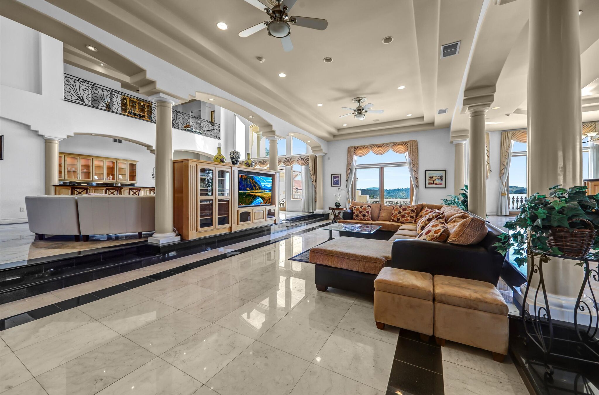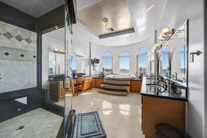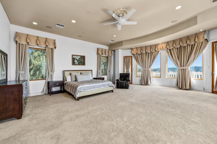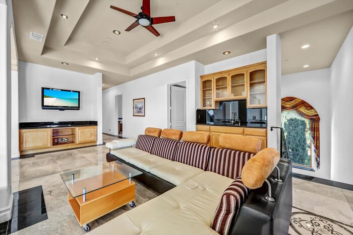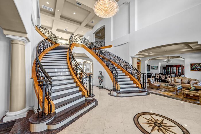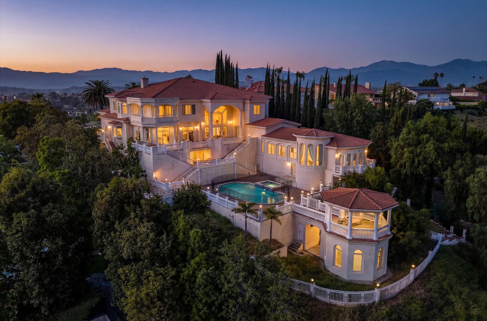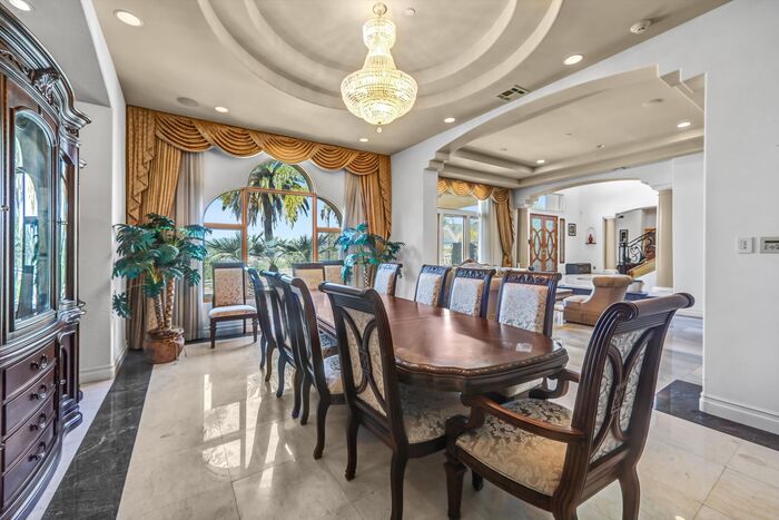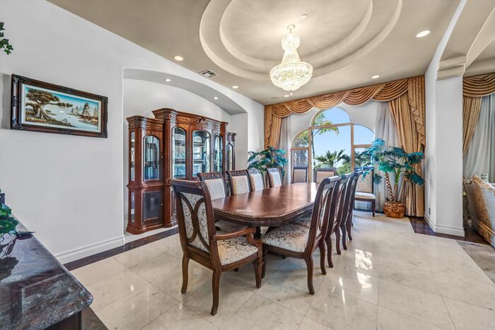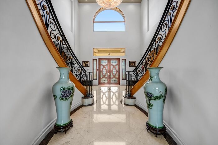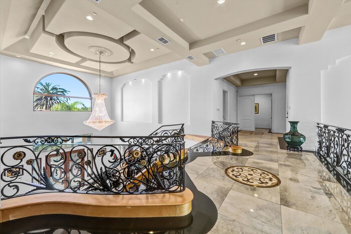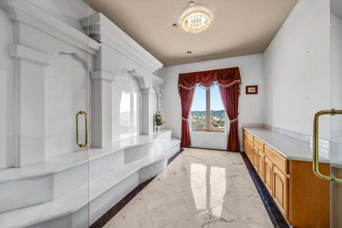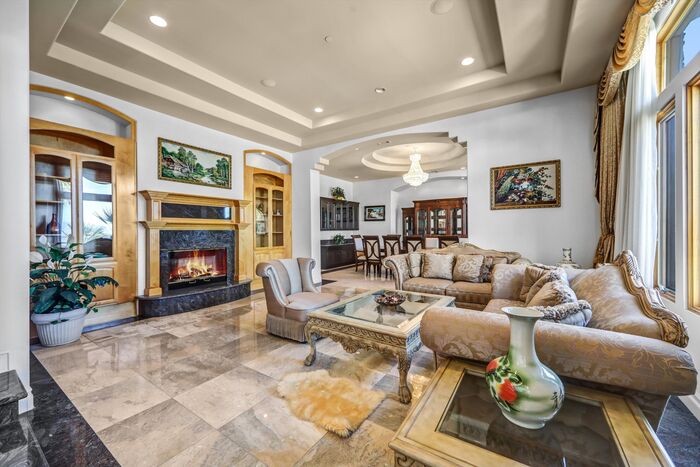 Luxurious 17,000-square-foot mansion located in the renowned “The Country Estates.” This efficiently designed residence features nine generously sized en-suite bedrooms, along with two huge primary suites and two powder rooms on the main level, totaling 11 bedrooms and 13 bathrooms. Situated on approximately 1.2 acres of well-maintained landscaping, the home captures breathtaking views of city lights and scenic hills from multiple vantage points. Upon entry, you’re welcomed by polished marble floors, soaring vaulted ceilings, and an impressive foyer with a dual staircase. The main level open-concept living areas create a bright and inviting atmosphere, ideal for both everyday living and entertaining and are equipped with two powder rooms and a bar area that’s perfect for hosting guests. The gourmet kitchen is designed for both functionality and style, featuring a large island, an oversized butler’s pantry, and additional high-end features to support daily living and entertaining needs. An elevator adds convenience and accessibility throughout the home. The ten-car garage provides ample space for large households or car enthusiasts. Additional interior highlights include a private game room, home theater, and a dedicated meditation room. The backyard offers an Italian villa-inspired retreat, designed for relaxation and complete with a Pool, Spa, BBQ station. Carefully crafted, this home blends refined elegance with everyday comfort. Located in a highly sought-after community with top-rated schools, the HOA includes 24-hour guard-gated security and amenities such as a community pool and spa, tennis courts, a clubhouse, and more. Come experience everything this exceptional property has to offer.