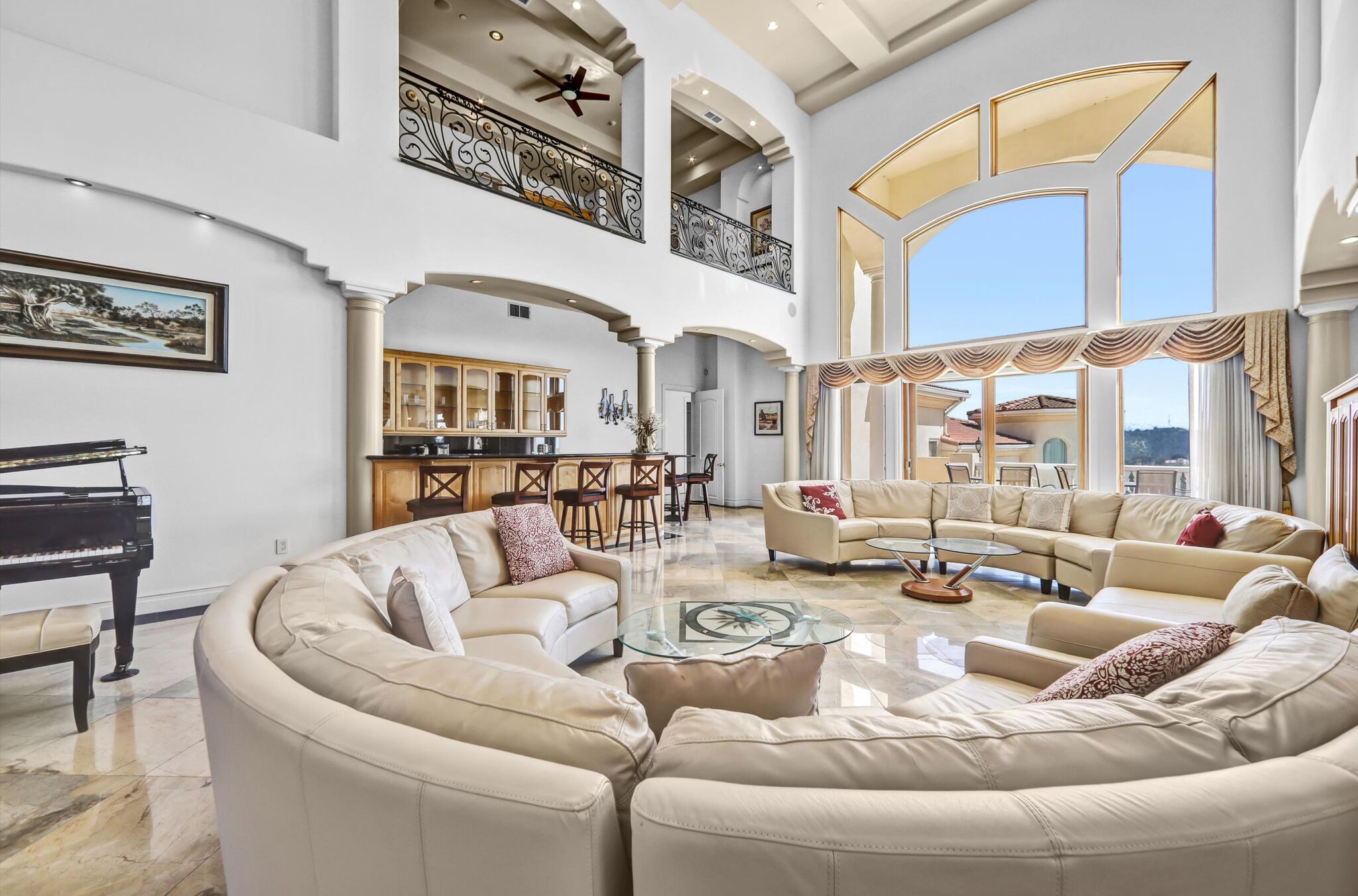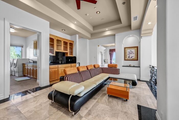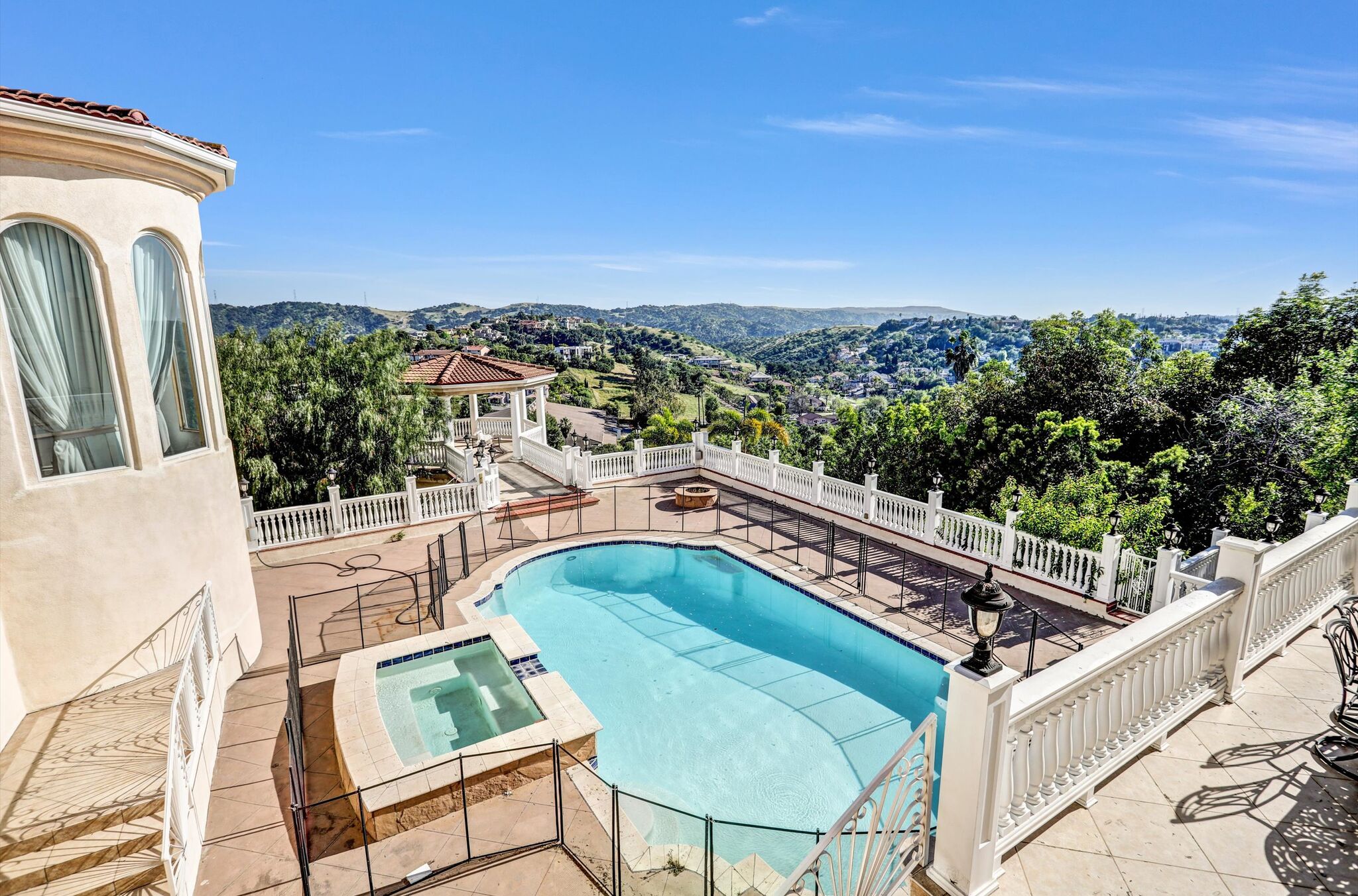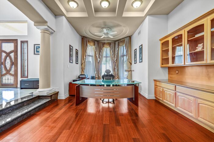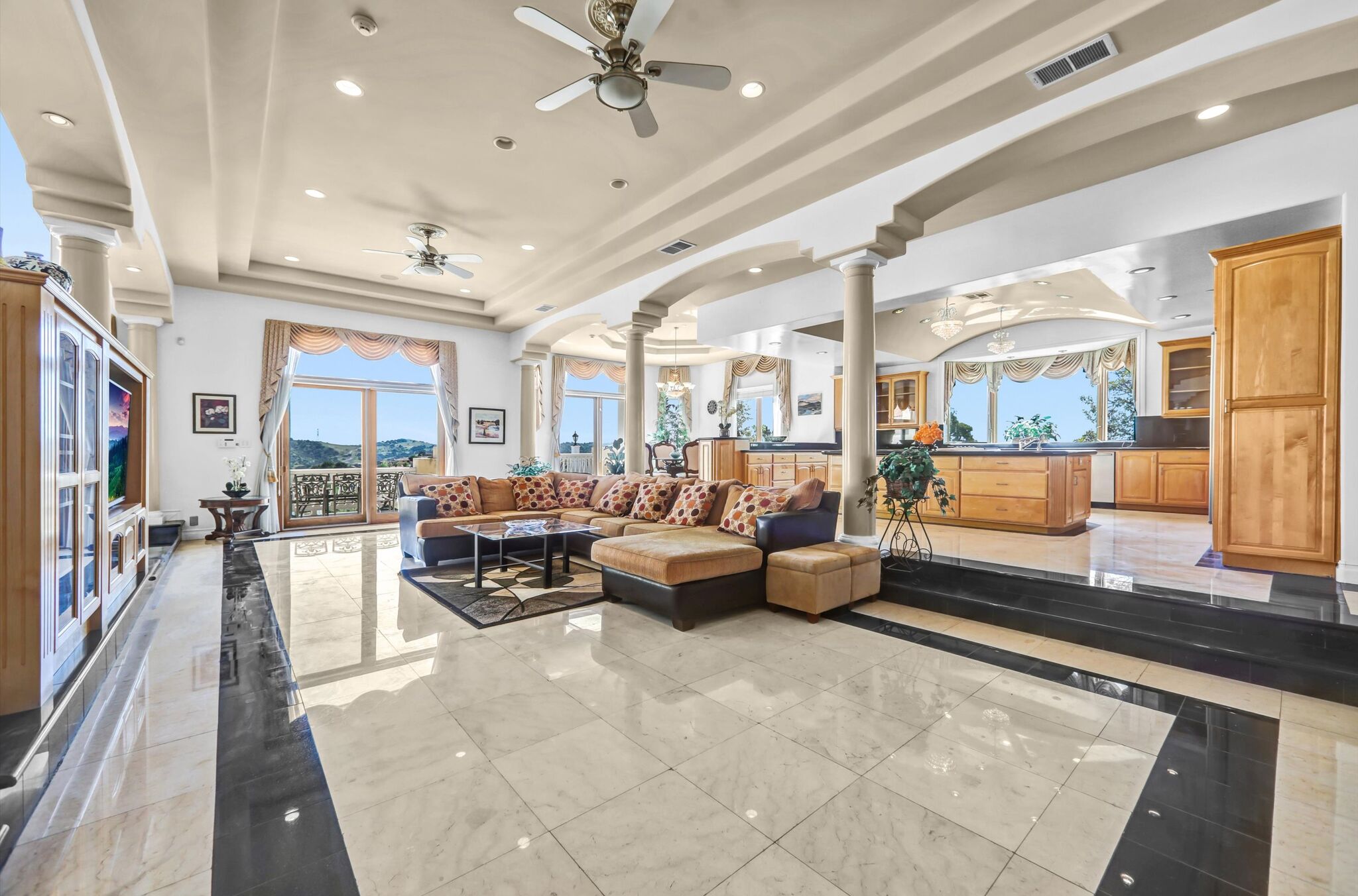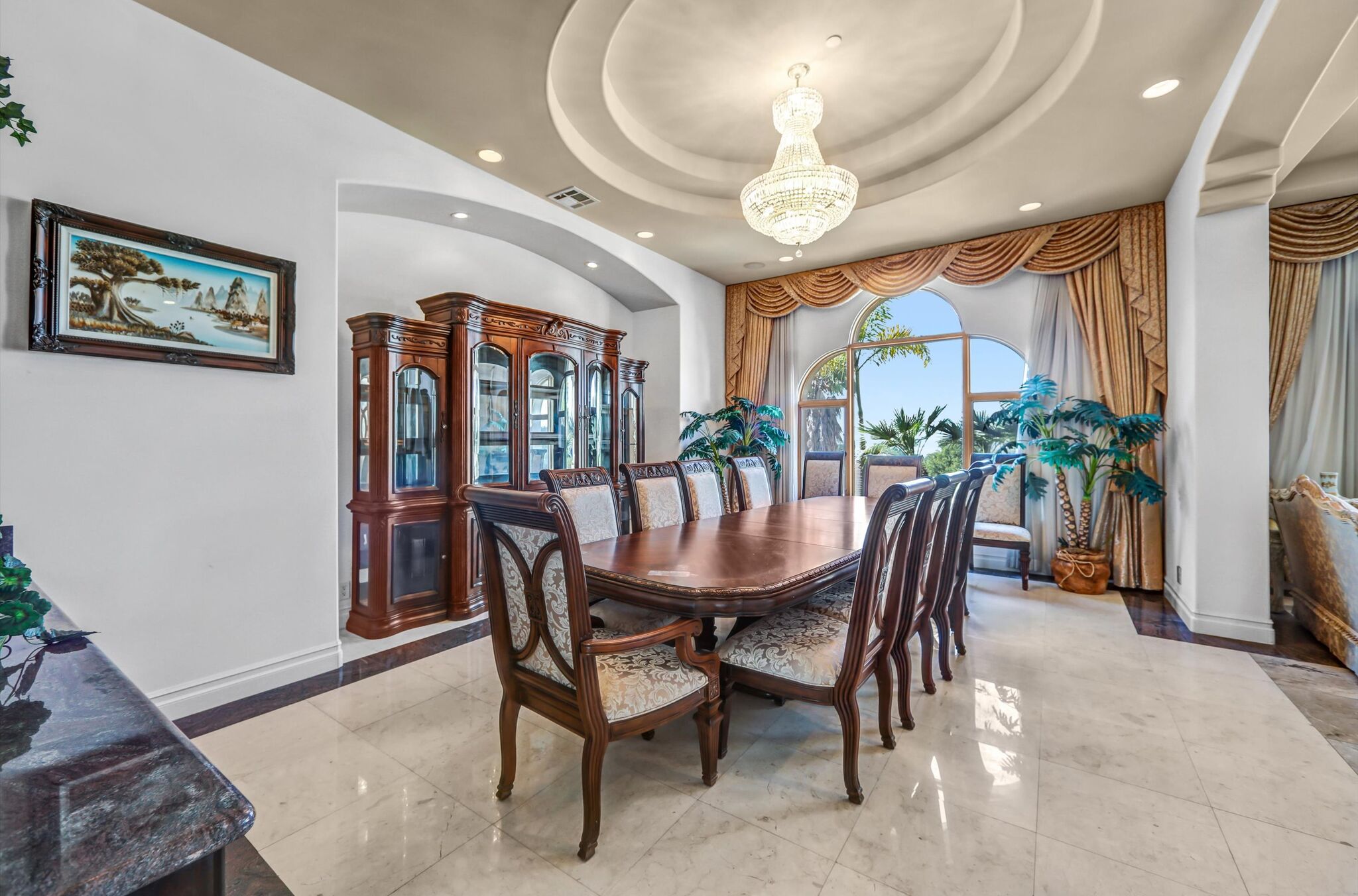 Luxurious 17,000-square-foot mansion located in the renowned “The Country Estates.” This efficiently designed residence features nine generously sized en-suite bedrooms, along with two huge primary suites and two powder rooms on the main level, totaling 11 bedrooms and 13 bathrooms. Situated on approximately 1.2 acres of well-maintained landscaping, the home captures breathtaking views of city lights and scenic hills from multiple vantage points. Upon entry, you’re welcomed by polished marble floors, soaring vaulted ceilings, and an impressive foyer with a dual staircase. The main level open-concept living areas create a bright and inviting atmosphere, ideal for both everyday living and entertaining and are equipped with two powder rooms and a bar area that’s perfect for hosting guests. The gourmet kitchen is designed for both functionality and style, featuring a large island, an oversized butler’s pantry, and additional high-end features to support daily living and entertaining needs. An elevator adds convenience and accessibility throughout the home. The ten-car garage provides ample space for large households or car enthusiasts. Additional interior highlights include a private game room, home theater, and a dedicated meditation room. The backyard offers an Italian villa-inspired retreat, designed for relaxation and complete with a Pool, Spa, BBQ station. Carefully crafted, this home blends refined elegance with everyday comfort. Located in a highly sought-after community with top-rated schools, the HOA includes 24-hour guard-gated security and amenities such as a community pool and spa, tennis courts, a clubhouse, and more. Come experience everything this exceptional property has to offer.