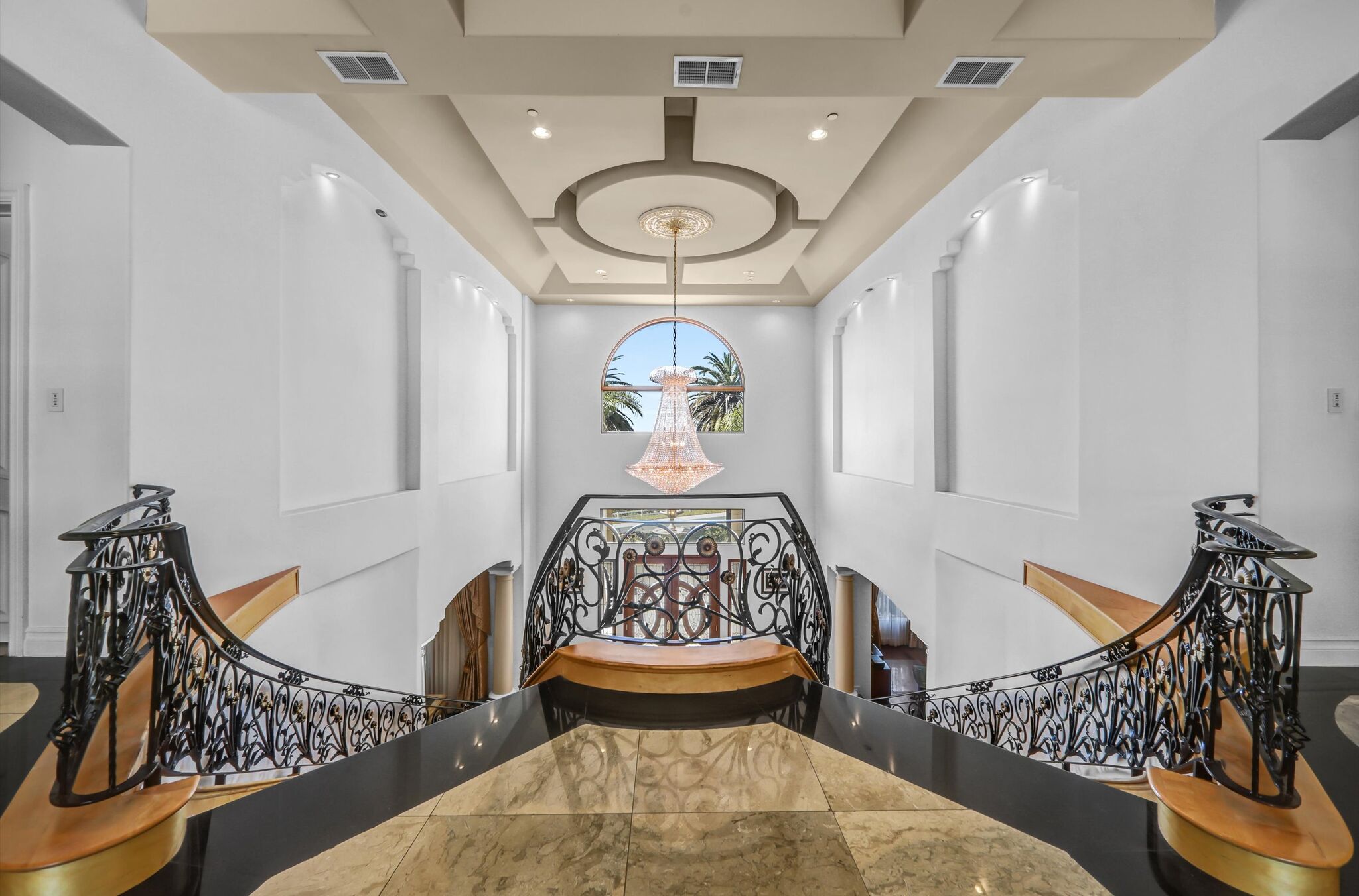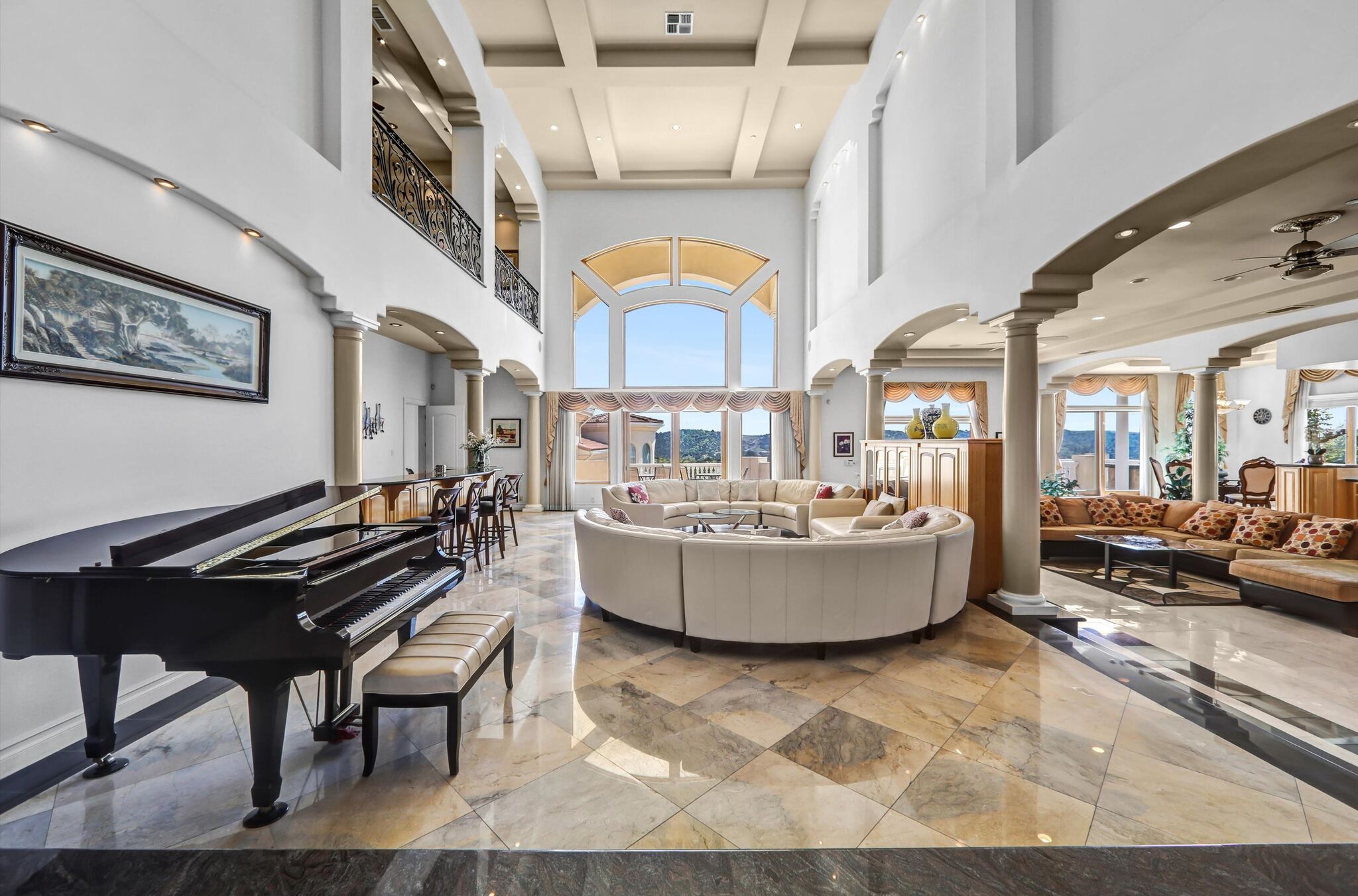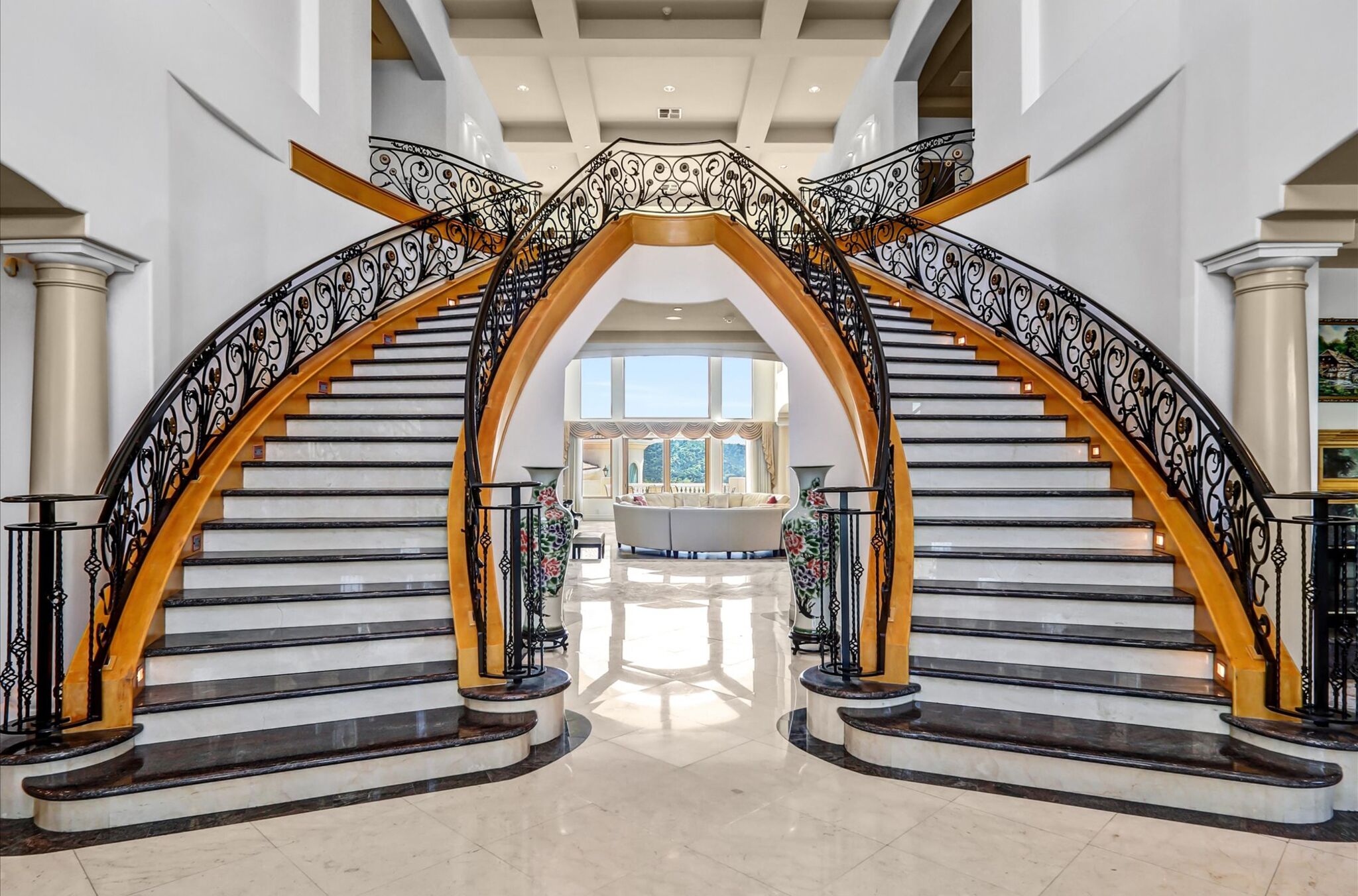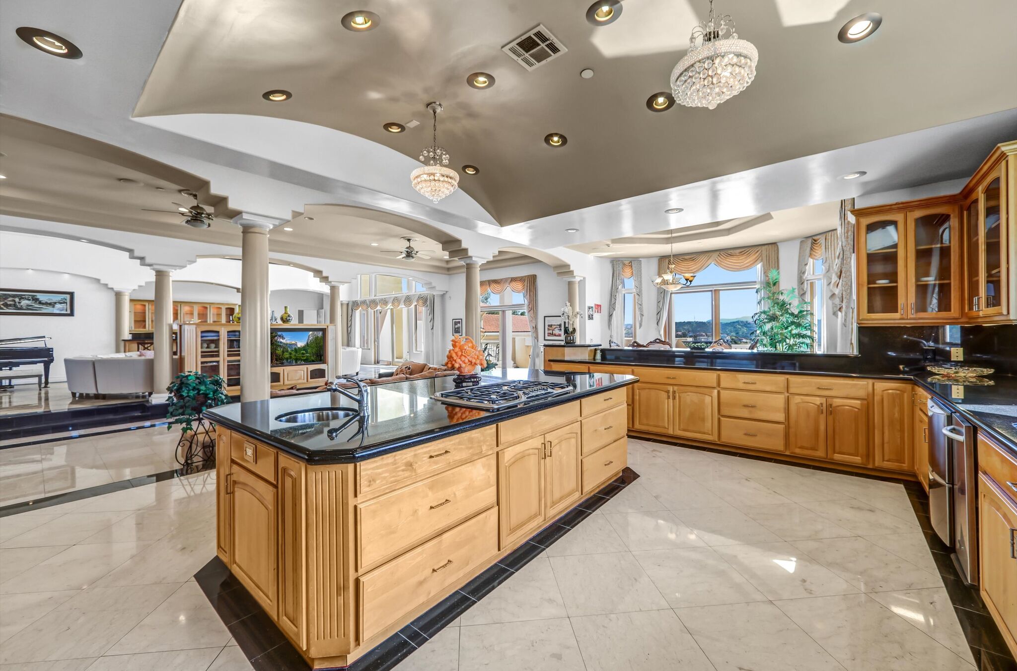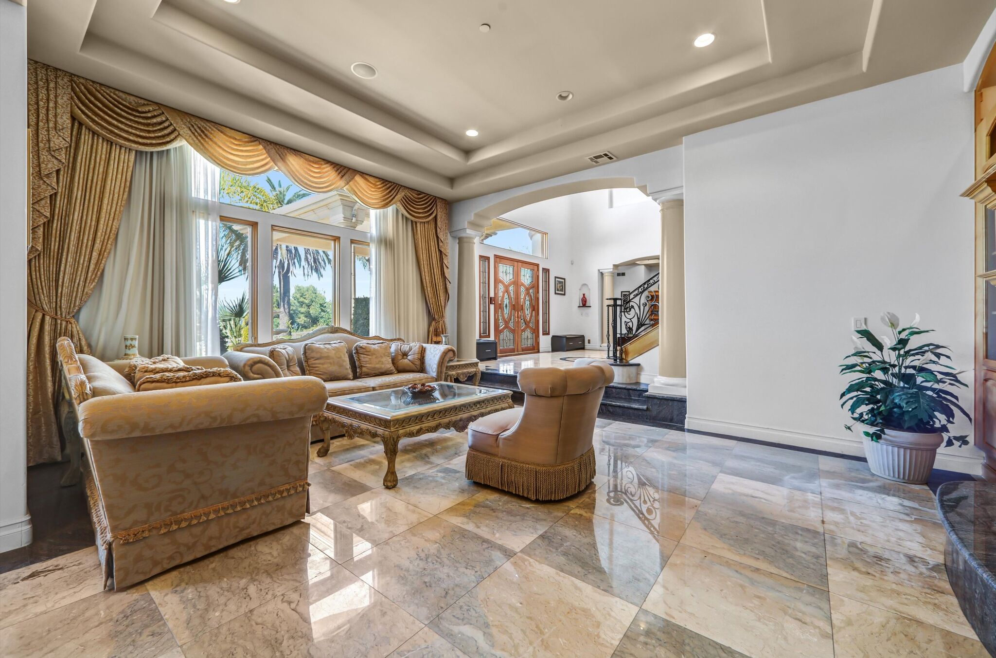 Luxurious 17,000-square-foot mansion located in the renowned “The Country Estates.” This efficiently designed residence features nine generously sized en-suite bedrooms, along with two huge primary suites and two powder rooms on the main level, totaling 11 bedrooms and 13 bathrooms. Situated on approximately 1.2 acres of well-maintained landscaping, the home captures breathtaking views of city lights and scenic hills from multiple vantage points. Upon entry, you’re welcomed by polished marble floors, soaring vaulted ceilings, and an impressive foyer with a dual staircase. The main level open-concept living areas create a bright and inviting atmosphere, ideal for both everyday living and entertaining and are equipped with two powder rooms and a bar area that’s perfect for hosting guests. The gourmet kitchen is designed for both functionality and style, featuring a large island, an oversized butler’s pantry, and additional high-end features to support daily living and entertaining needs. An elevator adds convenience and accessibility throughout the home. The ten-car garage provides ample space for large households or car enthusiasts. Additional interior highlights include a private game room, home theater, and a dedicated meditation room. The backyard offers an Italian villa-inspired retreat, designed for relaxation and complete with a Pool, Spa, BBQ station. Carefully crafted, this home blends refined elegance with everyday comfort. Located in a highly sought-after community with top-rated schools, the HOA includes 24-hour guard-gated security and amenities such as a community pool and spa, tennis courts, a clubhouse, and more. Come experience everything this exceptional property has to offer.