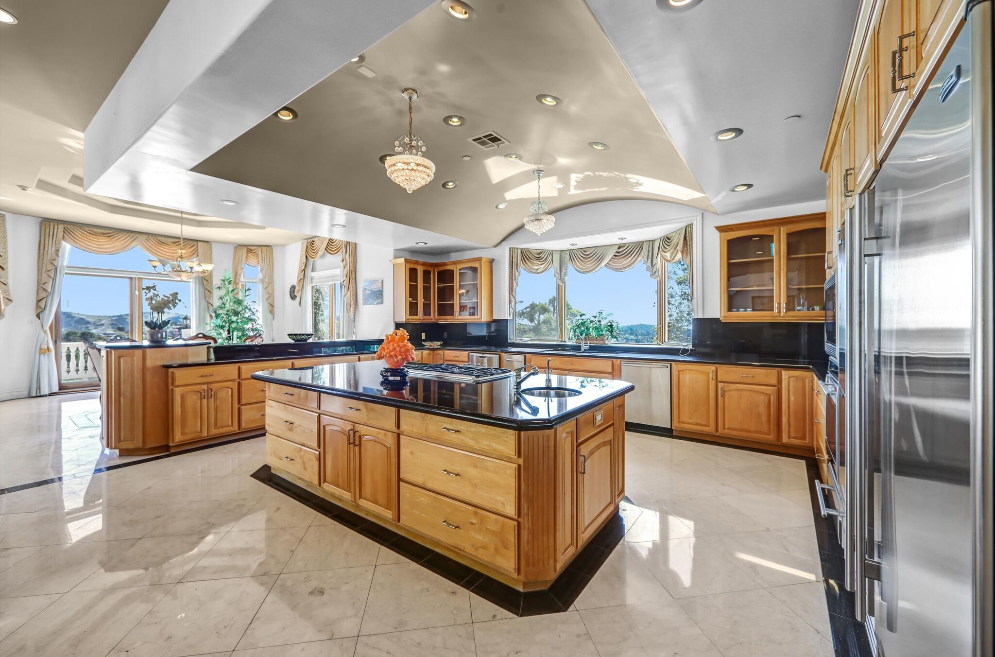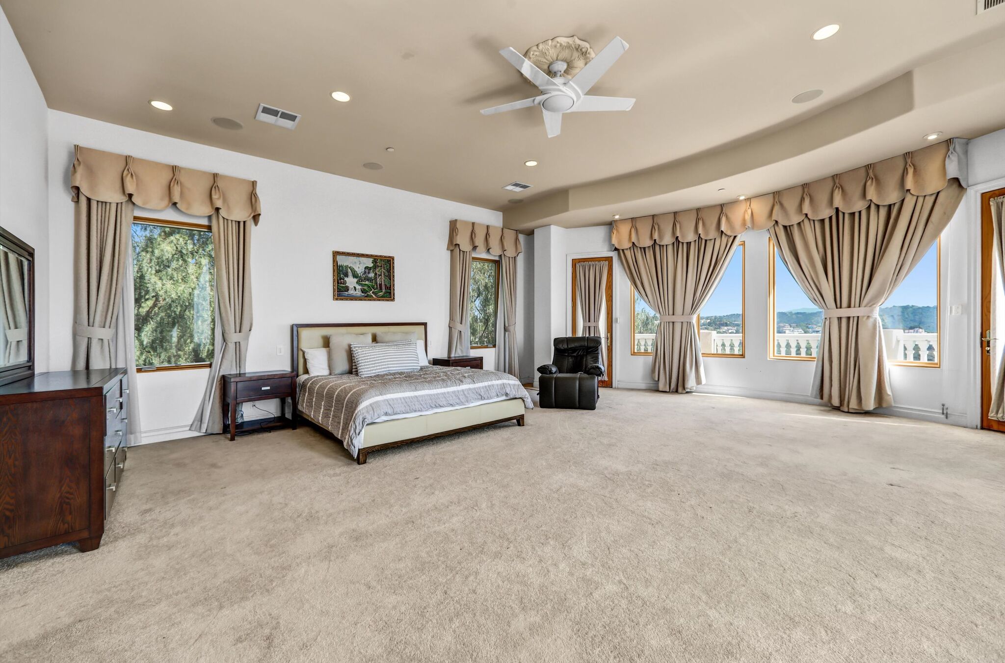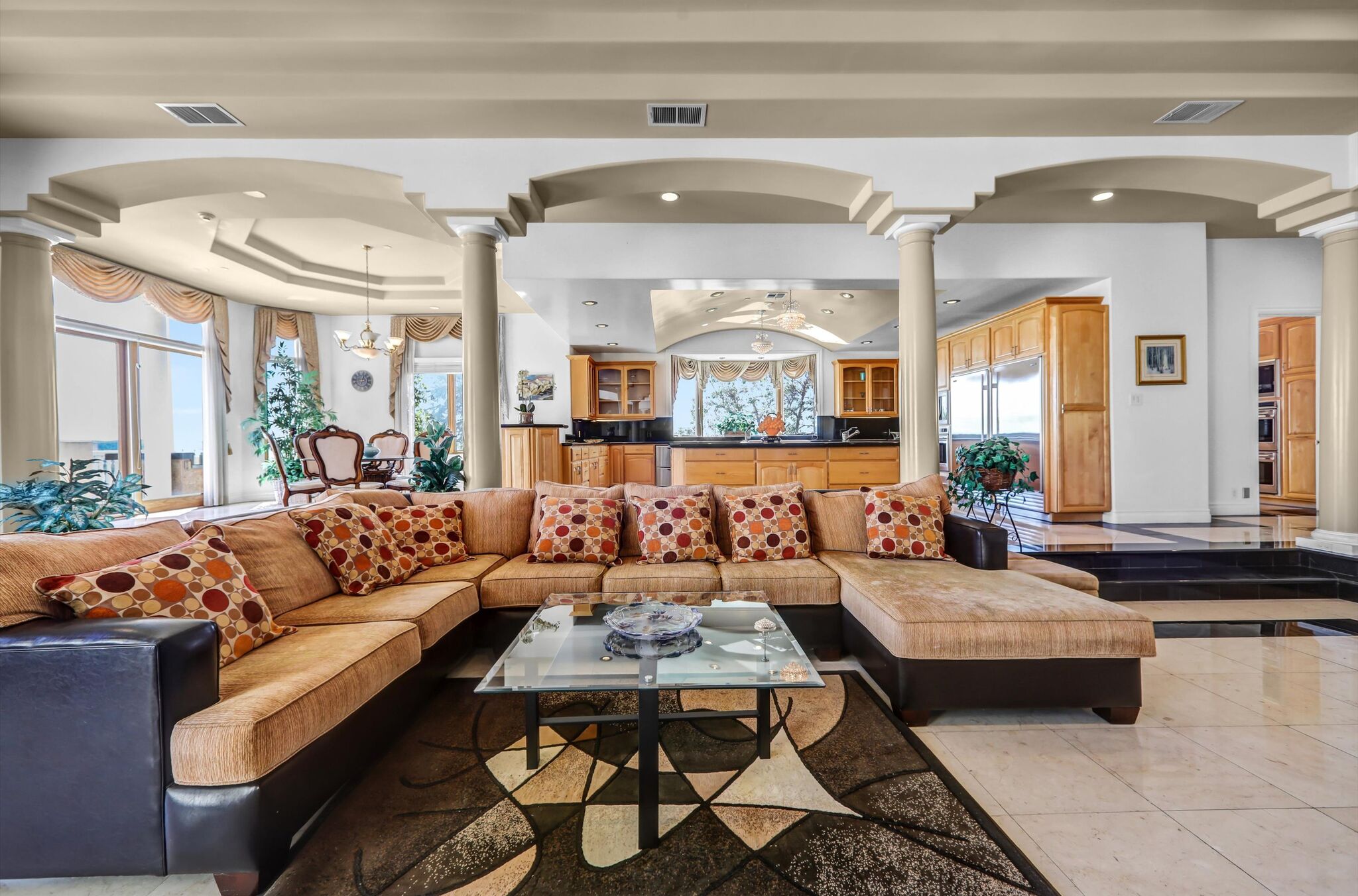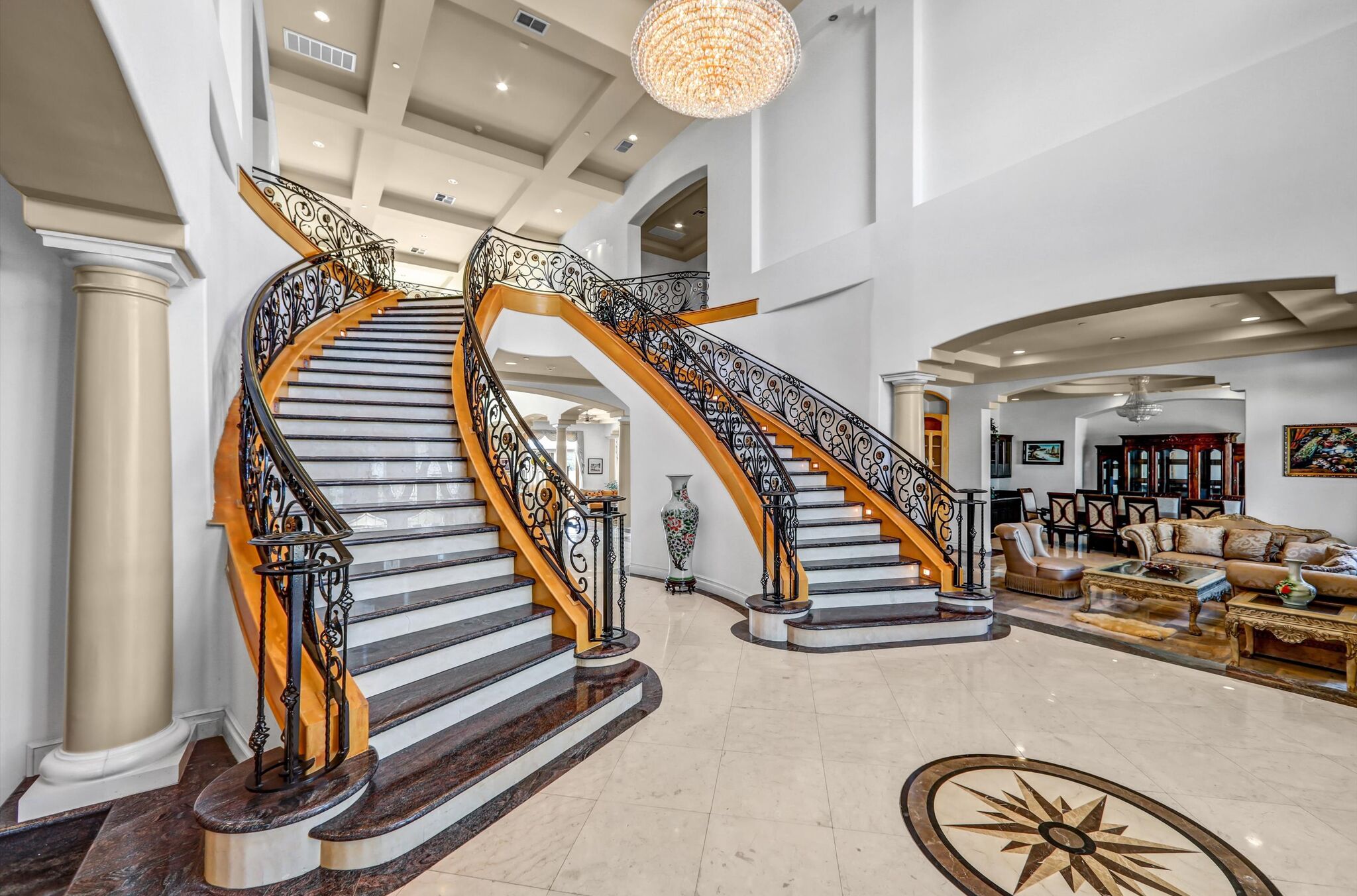 Luxurious 17,000-square-foot mansion located in the renowned “The Country Estates.” This efficiently designed residence features nine generously sized en-suite bedrooms, along with two huge primary suites and two powder rooms on the main level, totaling 11 bedrooms and 13 bathrooms. Situated on approximately 1.2 acres of well-maintained landscaping, the home captures breathtaking views of city lights and scenic hills from multiple vantage points. Upon entry, you’re welcomed by polished marble floors, soaring vaulted ceilings, and an impressive foyer with a dual staircase. The main level open-concept living areas create a bright and inviting atmosphere, ideal for both everyday living and entertaining and are equipped with two powder rooms and a bar area that’s perfect for hosting guests. The gourmet kitchen is designed for both functionality and style, featuring a large island, an oversized butler’s pantry, and additional high-end features to support daily living and entertaining needs. An elevator adds convenience and accessibility throughout the home. The ten-car garage provides ample space for large households or car enthusiasts. Additional interior highlights include a private game room, home theater, and a dedicated meditation room. The backyard offers an Italian villa-inspired retreat, designed for relaxation and complete with a Pool, Spa, BBQ station. Carefully crafted, this home blends refined elegance with everyday comfort. Located in a highly sought-after community with top-rated schools, the HOA includes 24-hour guard-gated security and amenities such as a community pool and spa, tennis courts, a clubhouse, and more. Come experience everything this exceptional property has to offer.