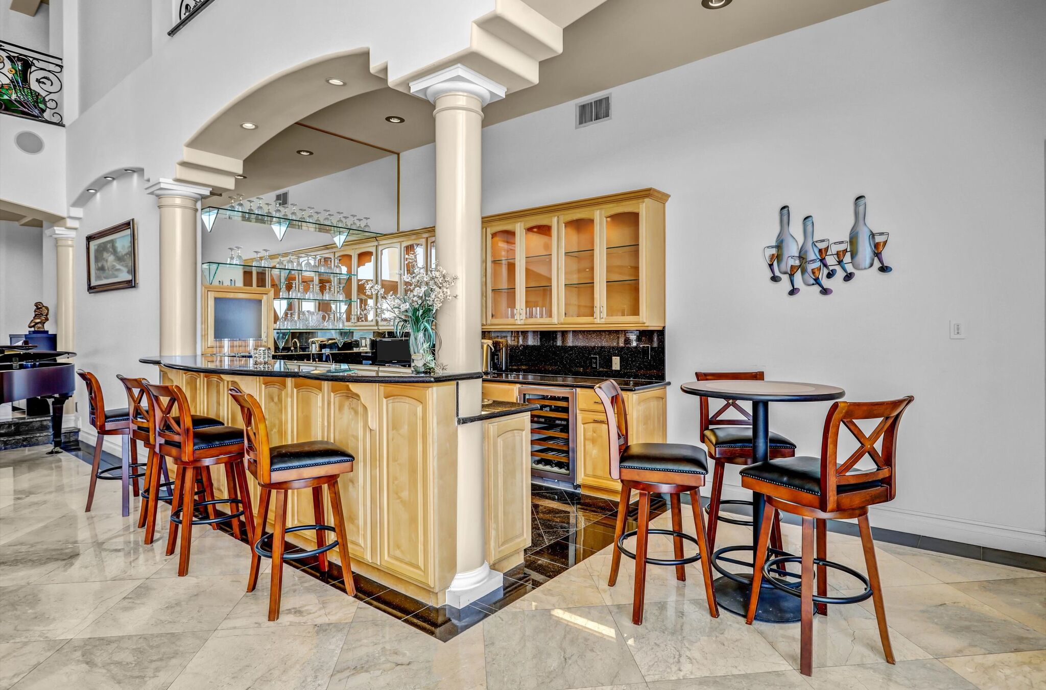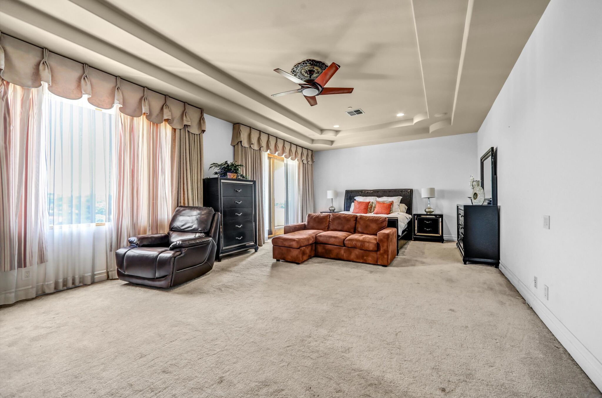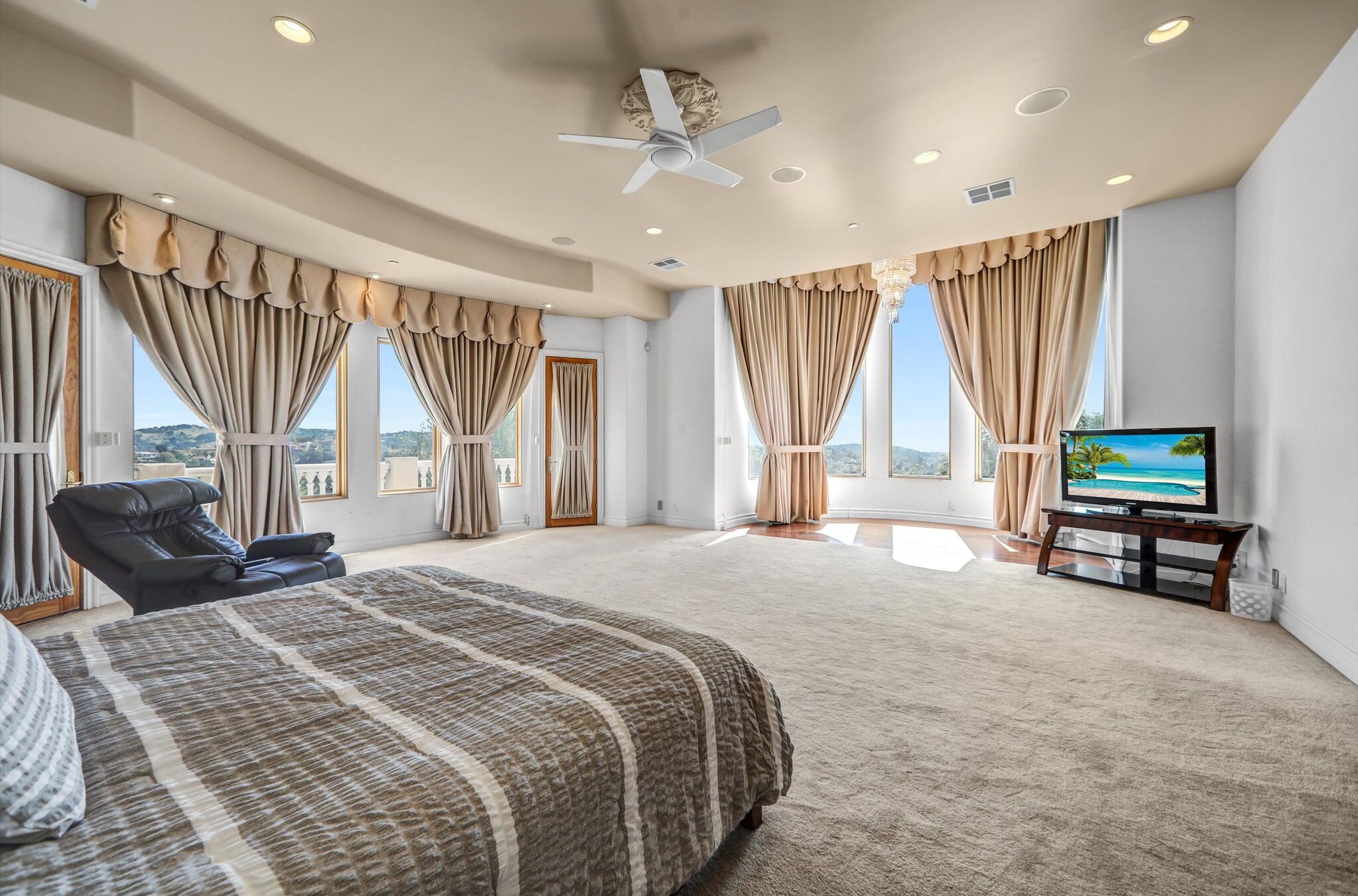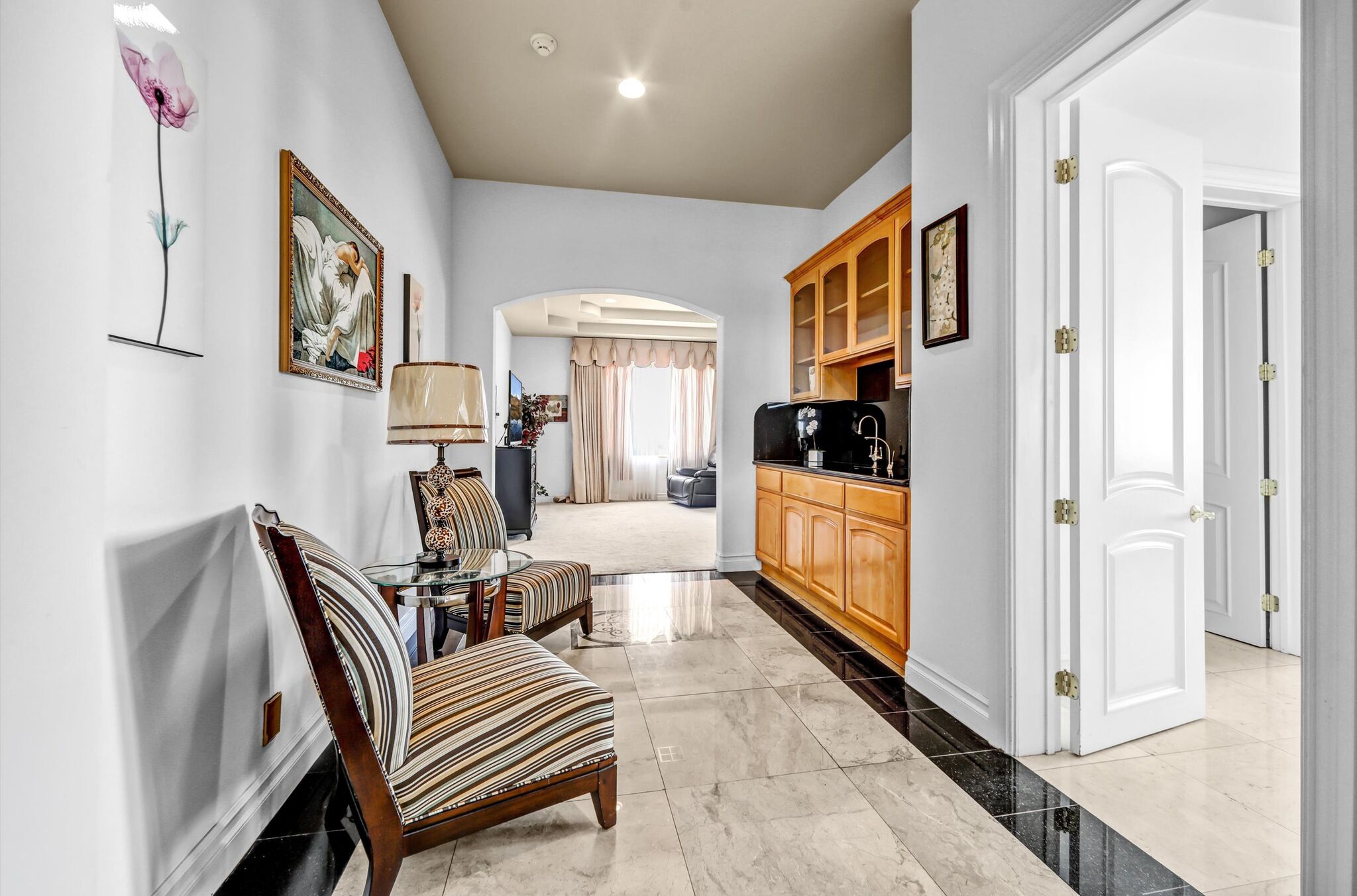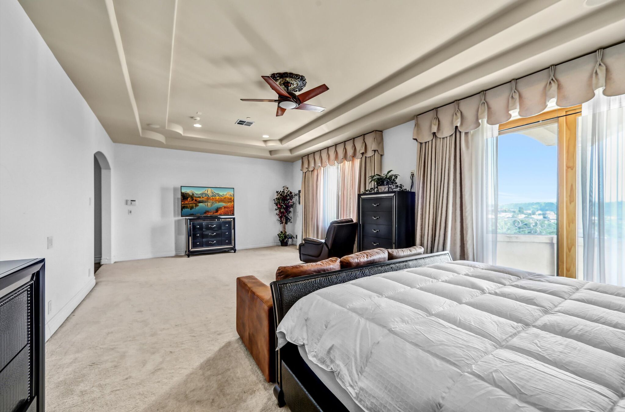 Luxurious 17,000-square-foot mansion located in the renowned “The Country Estates.” This efficiently designed residence features nine generously sized en-suite bedrooms, along with two huge primary suites and two powder rooms on the main level, totaling 11 bedrooms and 13 bathrooms. Situated on approximately 1.2 acres of well-maintained landscaping, the home captures breathtaking views of city lights and scenic hills from multiple vantage points. Upon entry, you’re welcomed by polished marble floors, soaring vaulted ceilings, and an impressive foyer with a dual staircase. The main level open-concept living areas create a bright and inviting atmosphere, ideal for both everyday living and entertaining and are equipped with two powder rooms and a bar area that’s perfect for hosting guests. The gourmet kitchen is designed for both functionality and style, featuring a large island, an oversized butler’s pantry, and additional high-end features to support daily living and entertaining needs. An elevator adds convenience and accessibility throughout the home. The ten-car garage provides ample space for large households or car enthusiasts. Additional interior highlights include a private game room, home theater, and a dedicated meditation room. The backyard offers an Italian villa-inspired retreat, designed for relaxation and complete with a Pool, Spa, BBQ station. Carefully crafted, this home blends refined elegance with everyday comfort. Located in a highly sought-after community with top-rated schools, the HOA includes 24-hour guard-gated security and amenities such as a community pool and spa, tennis courts, a clubhouse, and more. Come experience everything this exceptional property has to offer.