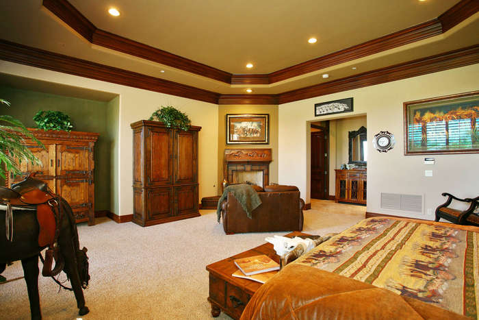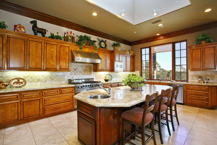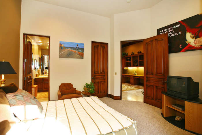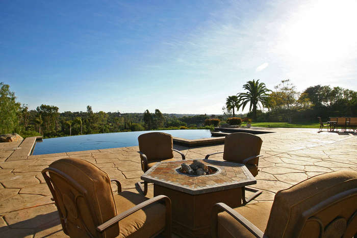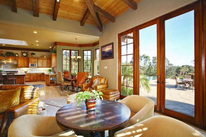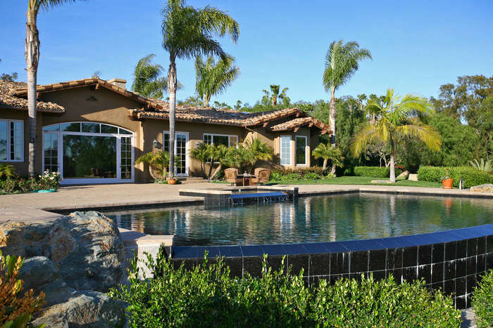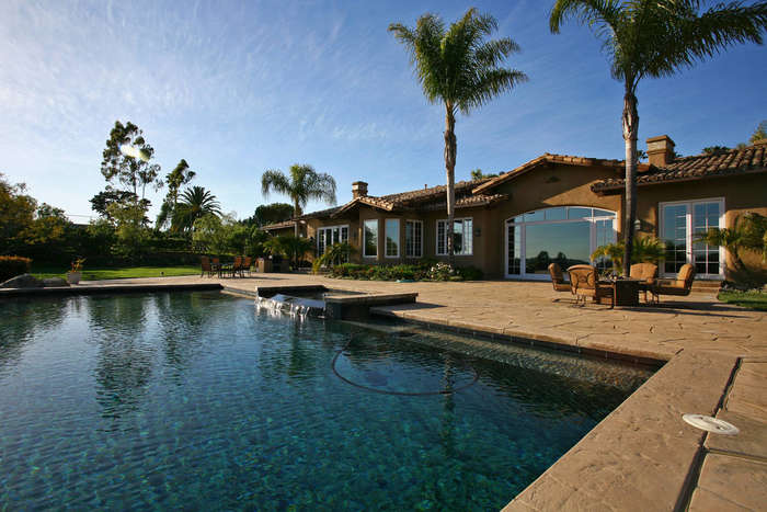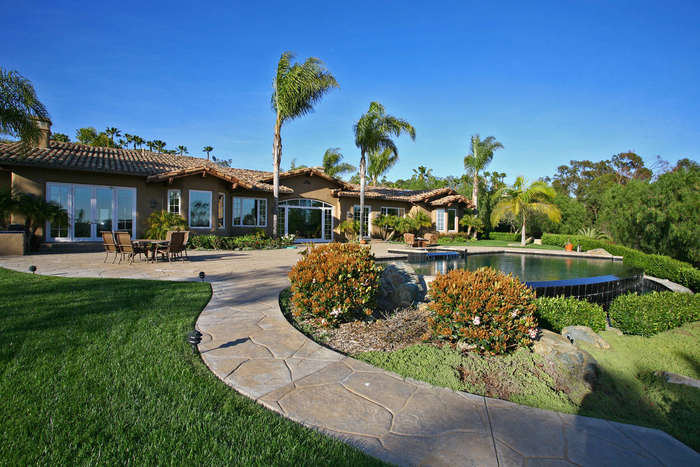Stunning Views are enjoyed from this 4Acre Mediterranean Treasure. A southwestern exposure makes this a LIGHT & BRIGHT home. Home is located up a long and inviting driveway with pool, spa, huge 2 BR/2BA Guest House, room for tennis or horses. This has a perfect floorplan that lays out the master, study & gym at one end and kitchen and family room at other. Theater/Media room is the hub of the home with a private 3BR/3BA children’s wing at other end. Spacious 4 + car garage. Generous size hallways allows for built in computer desk area. Unbelievable Beautiful ceiling treatments. This property has such a Romantic pure feeling that its “Aura” will make you be at peace with yourself and make this the most inviting enviroment for you and your family to grow.