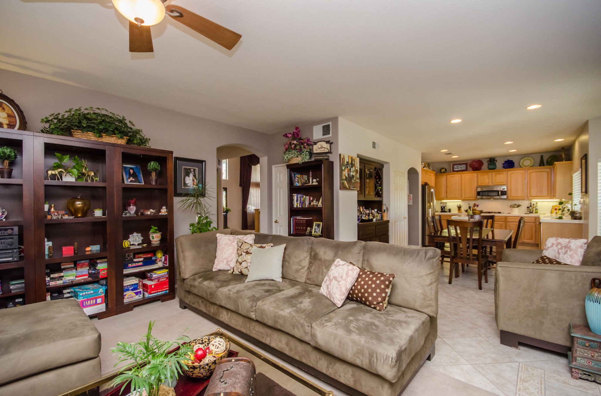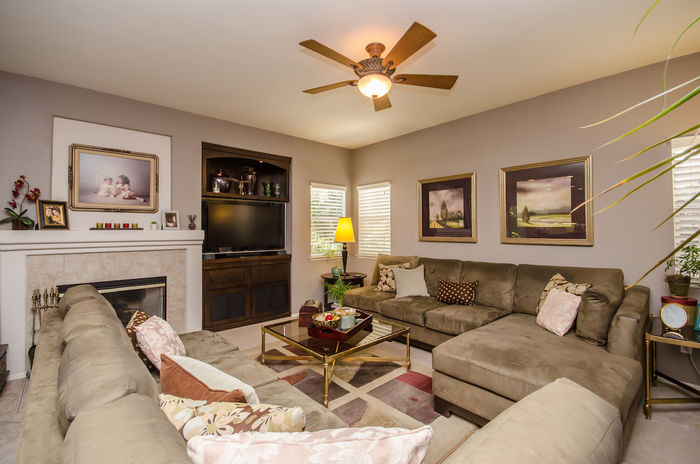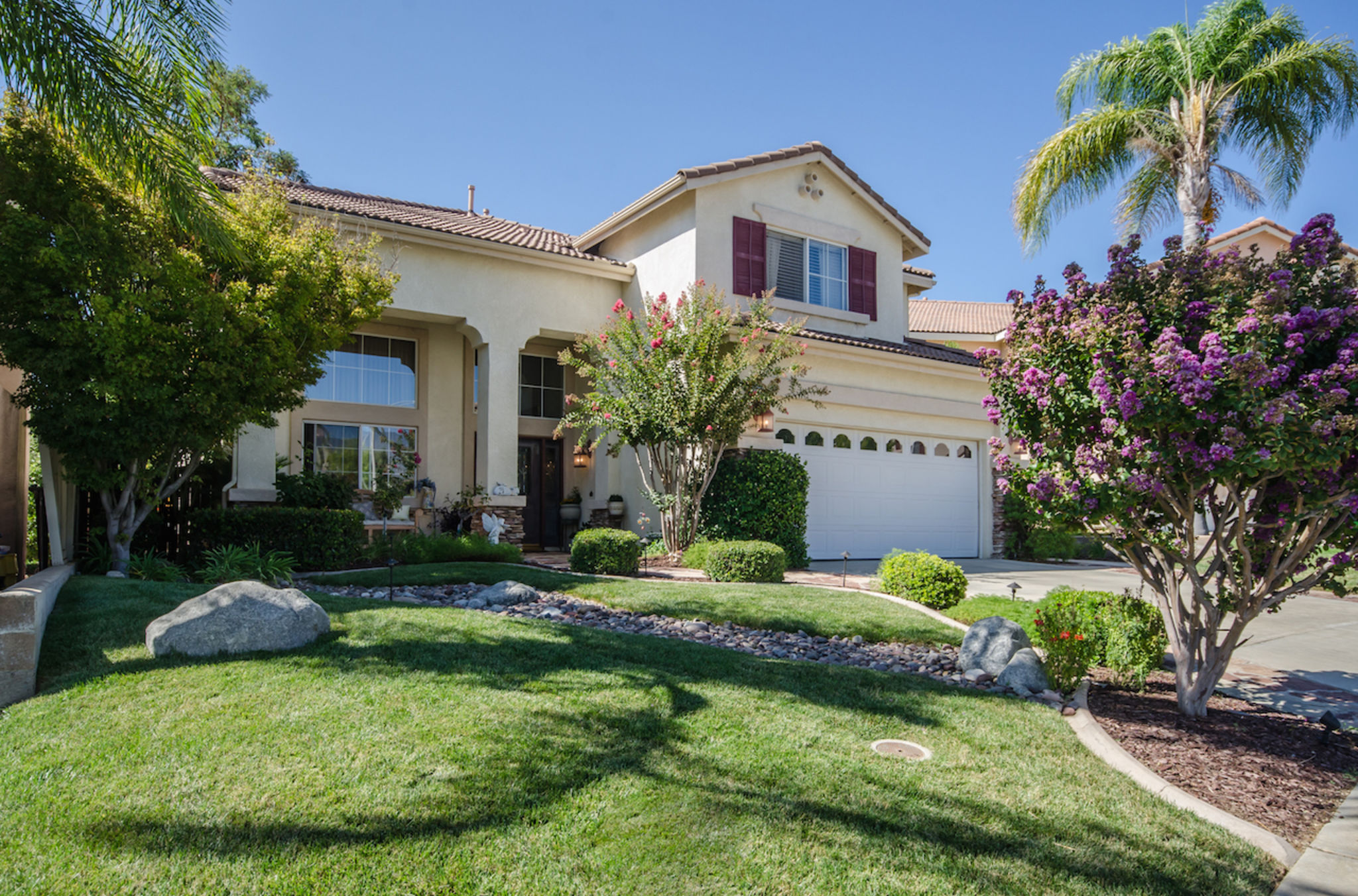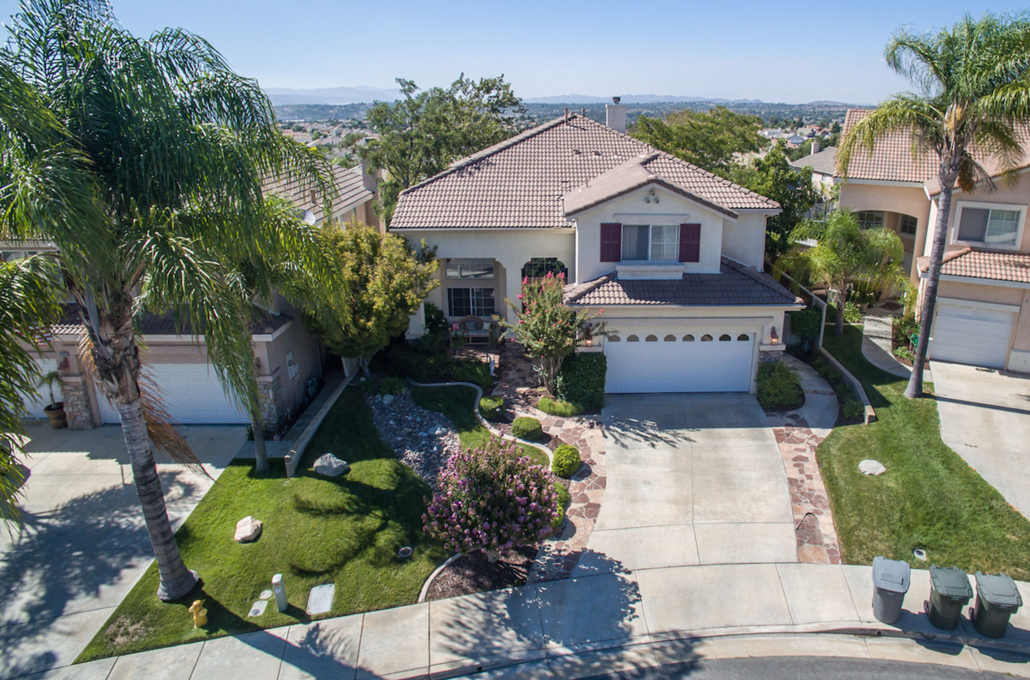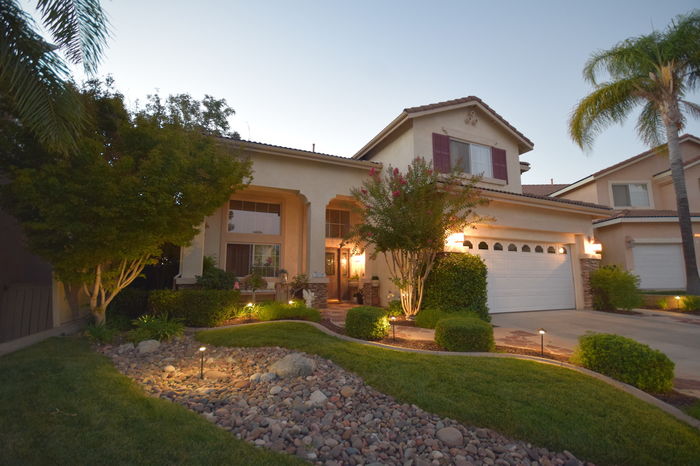 A rare opportunity exists to own a home with views in the sought after South Temecula Redhawk community. Desirable open floor plan includes 4 bedrooms PLUS A UPSTAIRSLOFT featuring one bedroom with adjacent bathroom conveniently located downstairs. Views are enjoyed from both inside & outside the home. Additional feature of the home includes a whole house quiet cool fan vents in every bedroom. Entering the front door a feeling of space & light pervades the home. Formal living entrance featuring high ceilings enhances this homes spacious look. The home opens up into a generous size great room that accommodates the kitchen, casual dining area and family room featuring fireplace & ceiling fan. Kitchen is spacious plenty of cabinet & counter space featuring upgraded stainless steel appliances, double oven, built in microwave, walk in pantry and large center island. Upstairs you will find 3 spacious bedrooms all feature ceiling fans & closet organizers. Two bedrooms feature walk in closets. Loft features built in desk. Huge master bedroom features two picture windows with breathtaking views, TWO walk in closets & ceiling fan. Master bath dual sinks, separate tub & shower. The backyards detailed landscaping featuring LED garden lighting & fruit trees is an intrinsic part of the overall design of this home. Covered outdoor patio presents a generous outdoor living space ENJOYTHEVIEWS!! Garage includes built in cabinets.