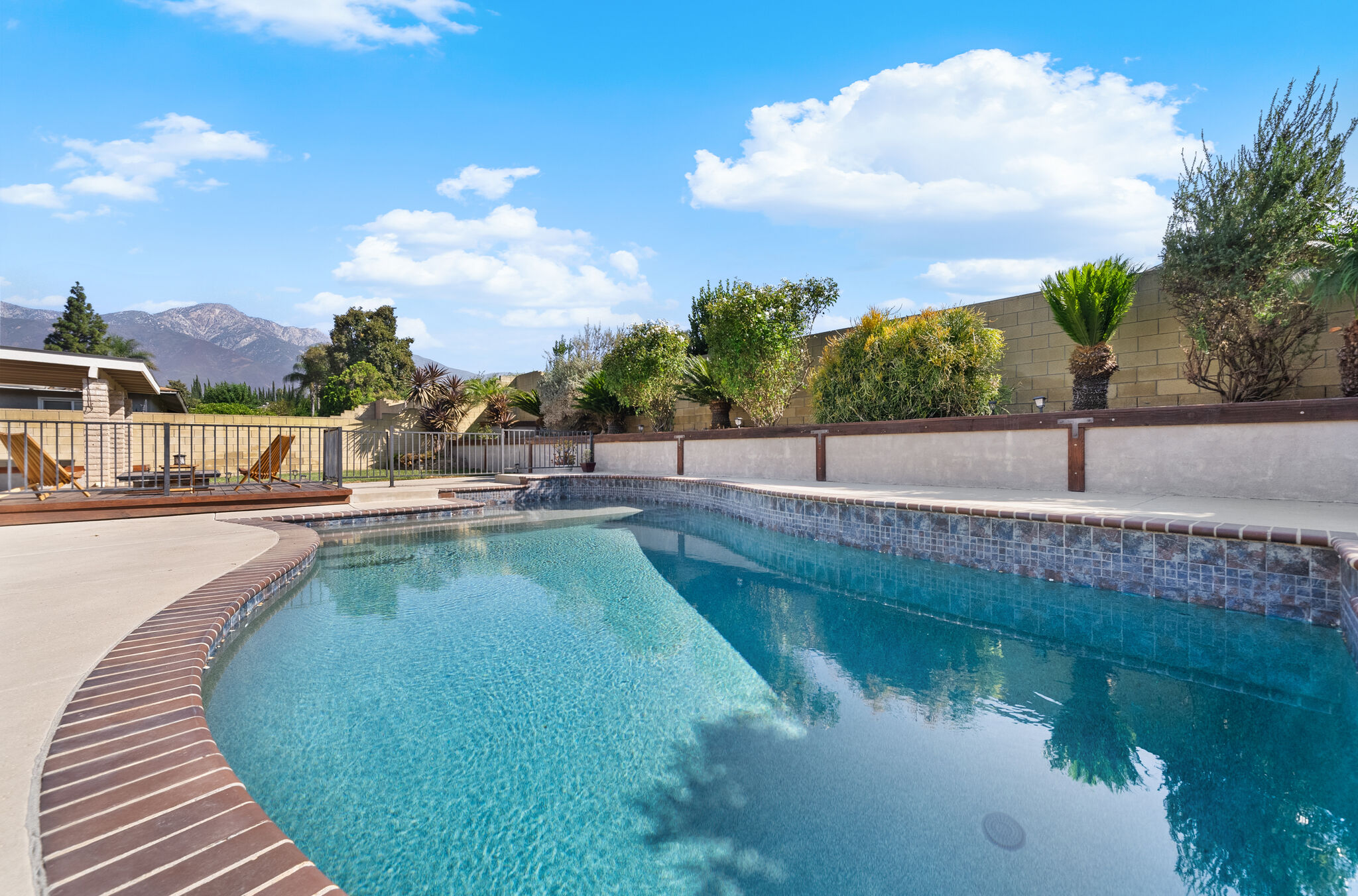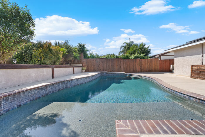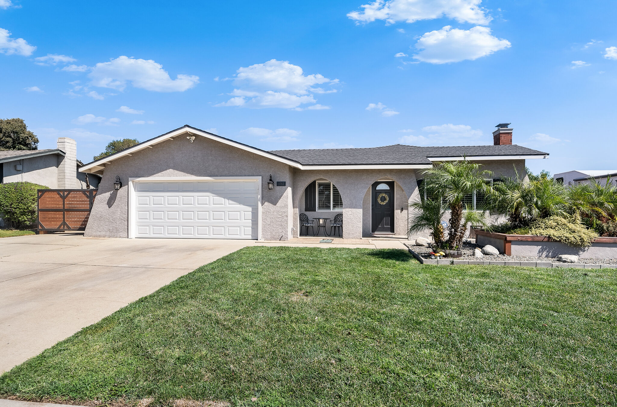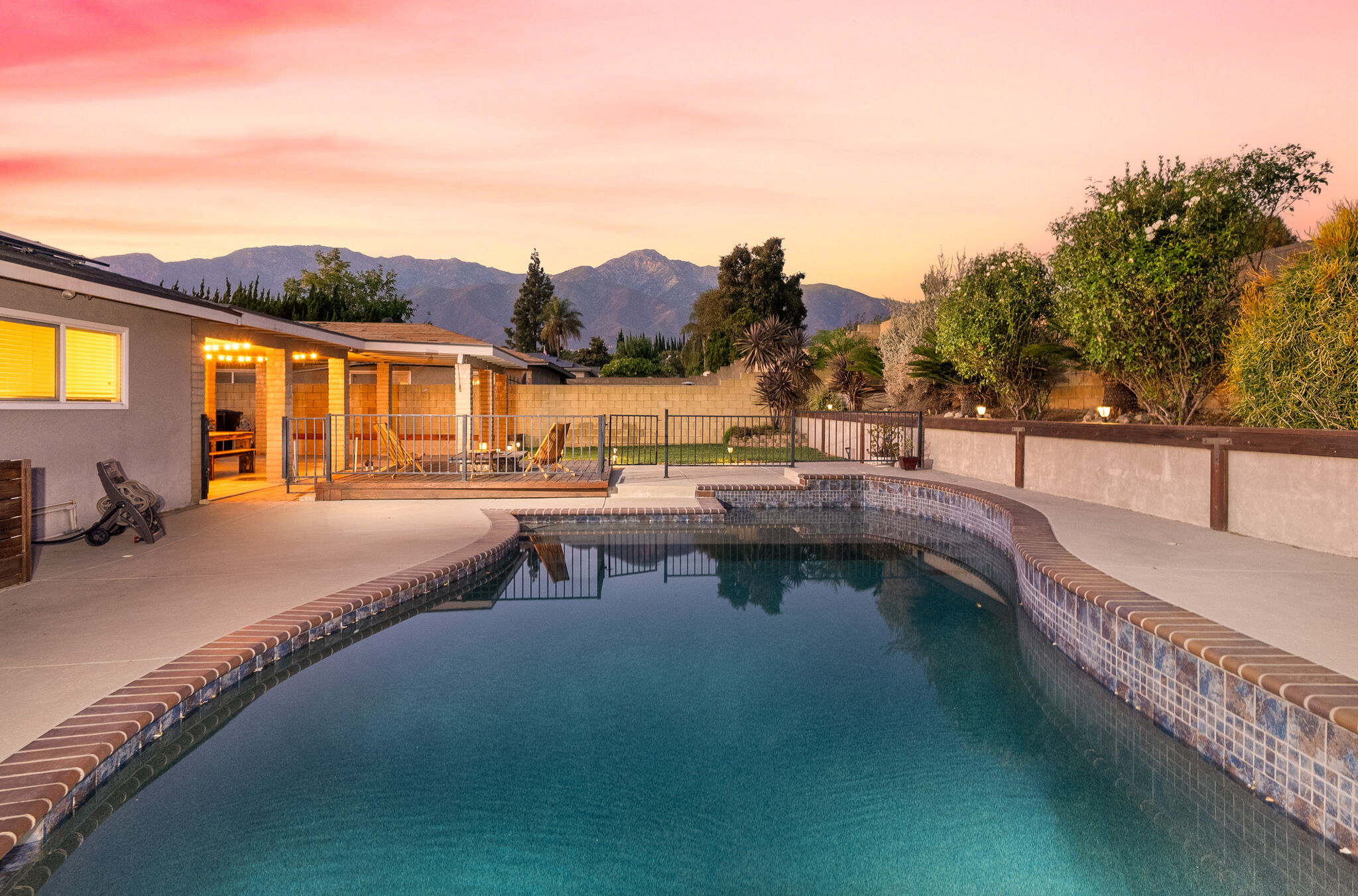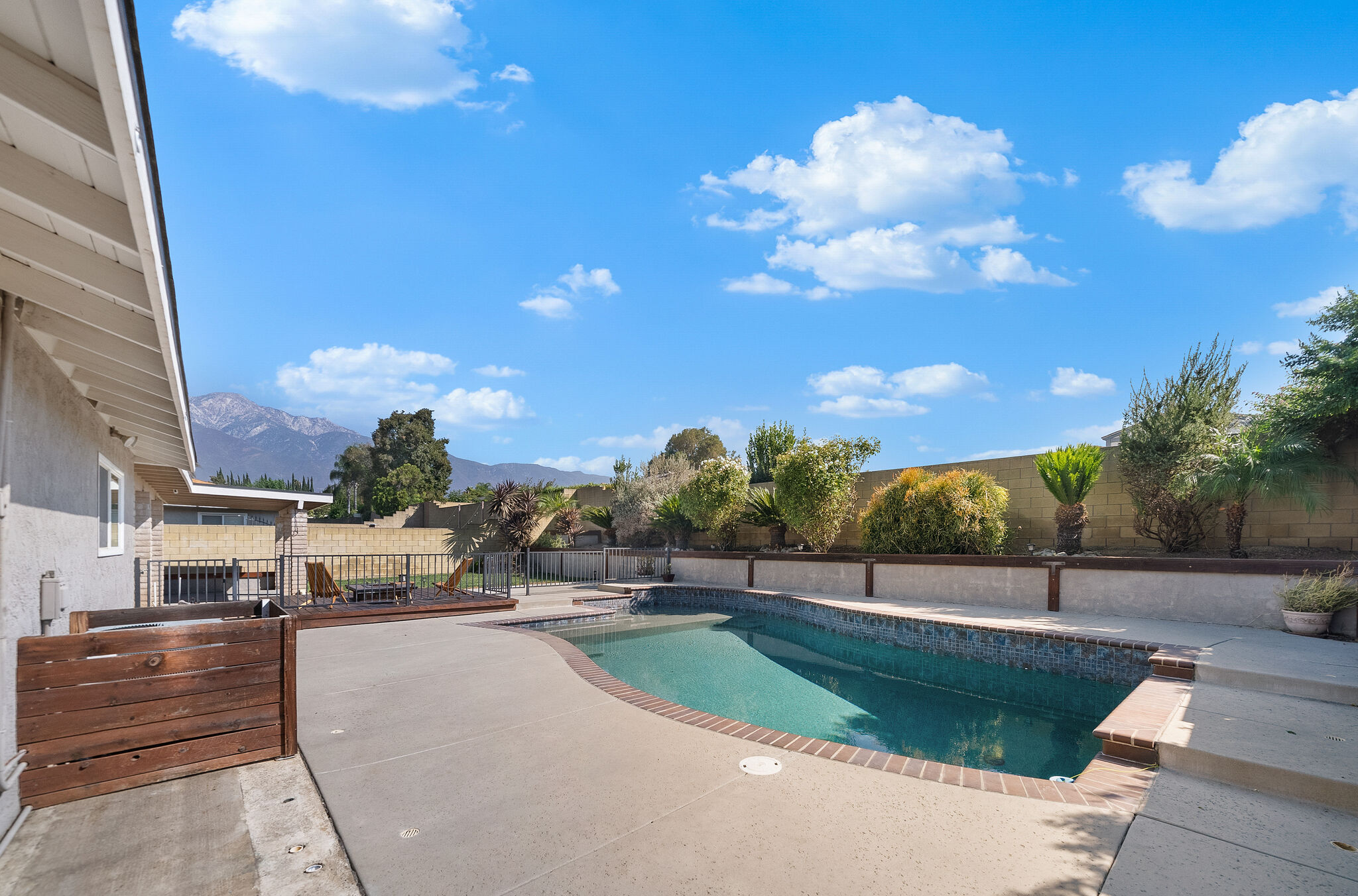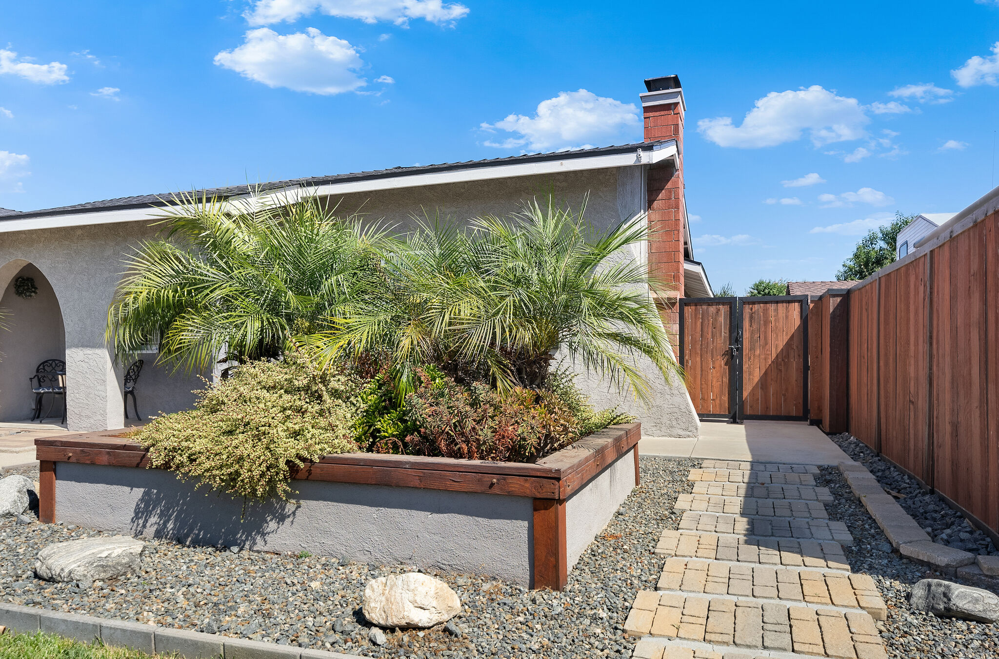 This beautifully updated single-story home offers comfort, style, and functionality, all in one!! Featuring RV parking, a freshly painted exterior, and a 2-car garage, this home is ready to welcome its new owners. The large family room boasts a vaulted ceiling, cozy fireplace, built-in bookshelves, and a mantle with custom lighting. Perfect for relaxing or entertaining. The kitchen is equipped with ample cabinet space, granite countertops, recessed lighting, and a walk-in pantry for all your storage needs. A generous family room includes a built-in media niche with extra shelving, ideal for storage or display. There’s also a custom-made desk area, perfect for studying or working from home. The primary bedroom features crown molding, a ceiling fan, and convenient access to the backyard. The updated primary bathroom boasts an oversized walk-in shower for a luxurious touch. Enjoy engineered wood flooring throughout most of the home, crown molding, and new dual pane windows for energy efficiency. The home also is equipped with a Tesla charger, an ADT security system, a newly installed furnace with an air conditioner evaporator, and a whole-house fan. Step into the backyard, where you will find a covered patio, a wood deck with a firepit and seating area, and a stunning swimming pool with a pebble-tech bottom. Solar panels add energy savings. With modern updates, a versatile layout, and outdoor features perfect for entertaining. This home is ideal for any family. Don’t miss your chance to make it your own!