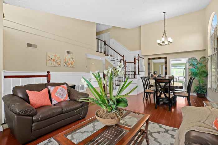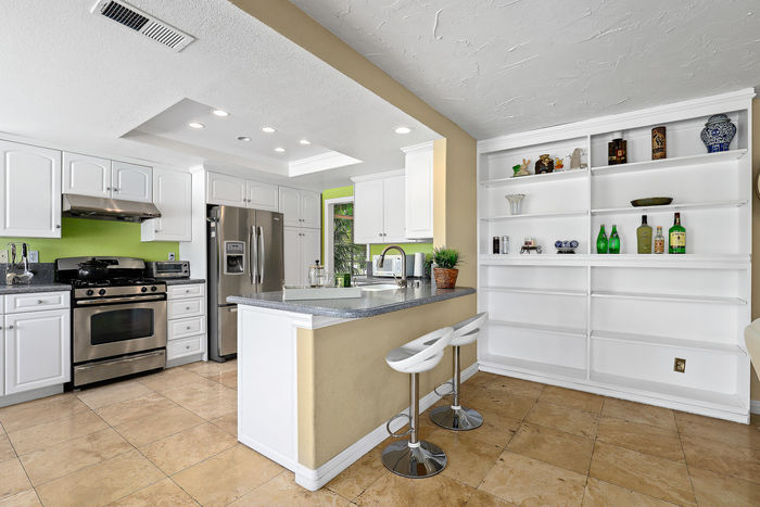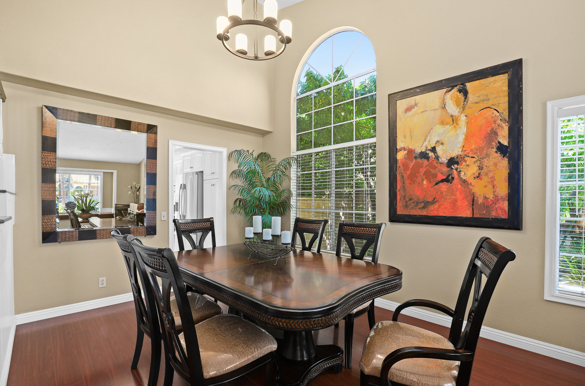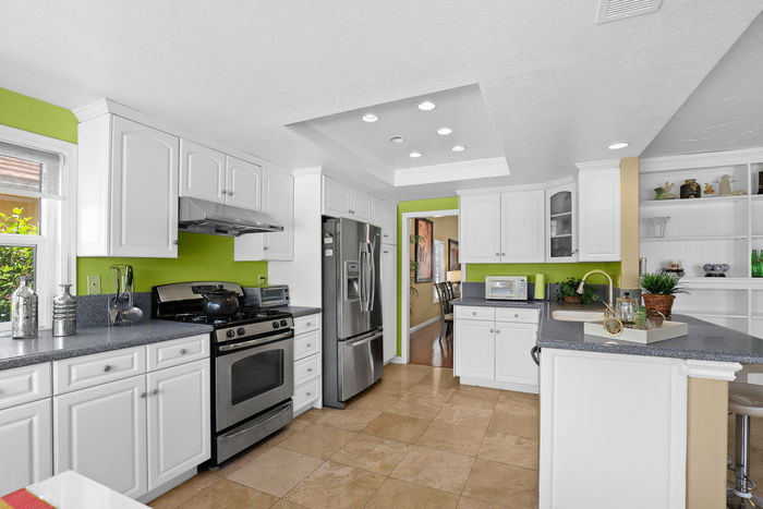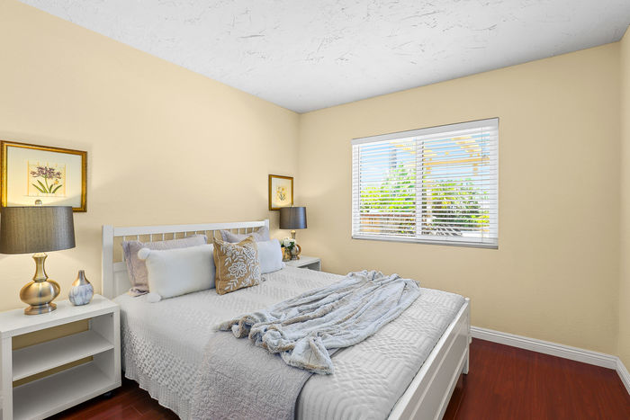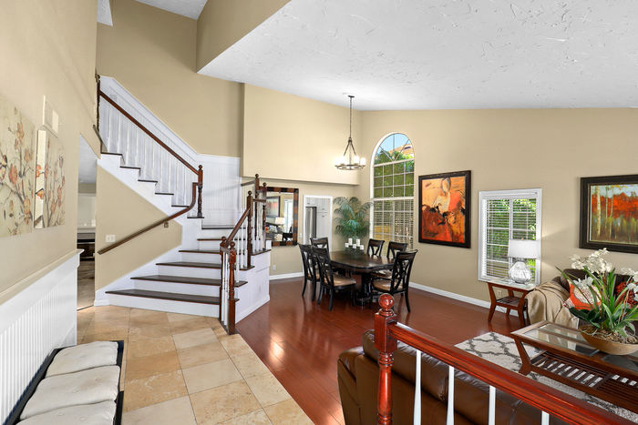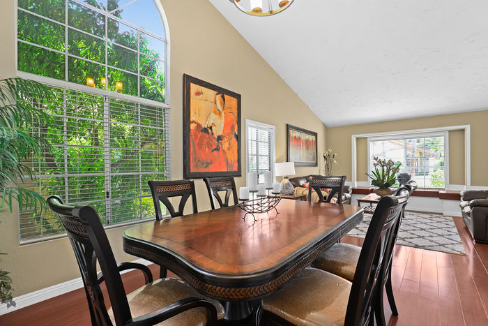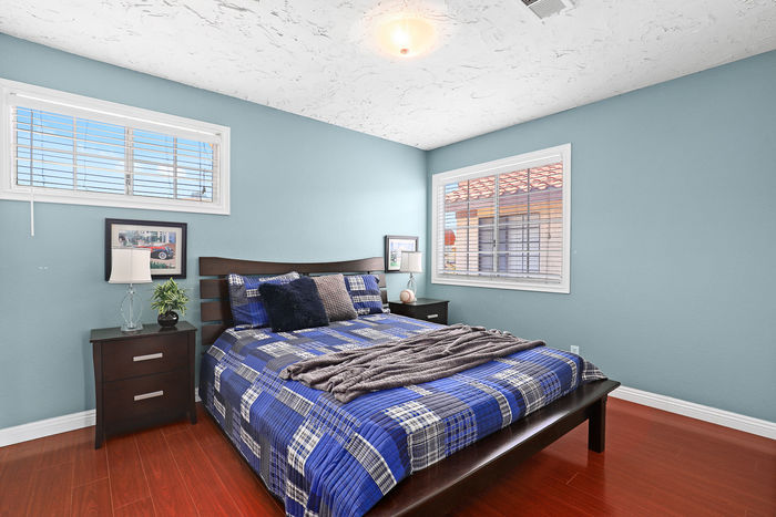 Neat curb appeal with low maintenance drought tolerance plants welcome you to this beautiful home. Raised ceiling & wood flooring in Living Room & Formal Dining accompanied by big windows, leads to an influx of natural light.
