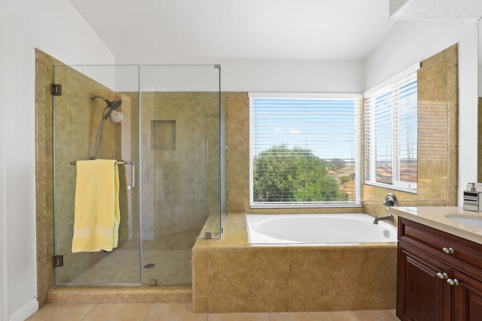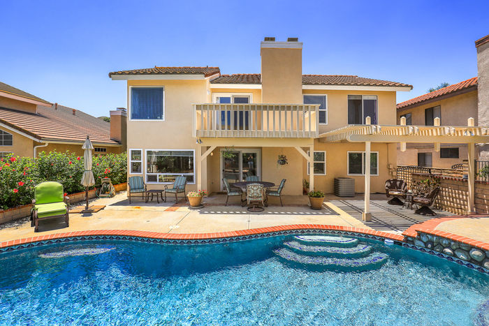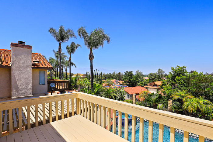 Kitchen features newly upgraded modern white cabinetry, Corian countertop, stainless steel appliances & breakfast nook. 4 bedrooms & 3 baths Single Family residence in South Chino Hills Butterfield Ranch area. Great curb appeal, low maintenance drought tolerant plants welcome you to this beautiful home. Raised ceiling, and wood flooring in the Living Room & Formal Dining Room. These rooms also feature oversize windows, that flood in natural lighting. Kitchen showcases upgraded, modern white cabinetry with Corian countertops and stainless steel appliances. Overlooking the backyard and pool from the Breakfast Nook creates a soothing view. Open Kitchen links to the Family room with dual tile floorings and a custom mantle fireplace. Downstairs there is one bedroom and one bath. All bedrooms feature wood flooring. Master suite includes a spacious balcony that outlooks the mountains & city lights. Remodeled Master Bath room offers quartz counter, dual sinks, bathtub, frameless euro style shower & walk-in closet with custom organizers. Sparkling Pool, Relaxing Spa, and two patios expand the living spaces extensively. Within the Chino Valley Unified School District. Close to schools, and easy access to 71, 91 & 60 freeways. NO HOA and low tax rate.